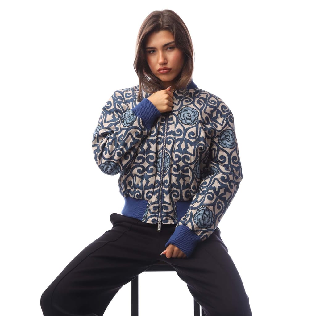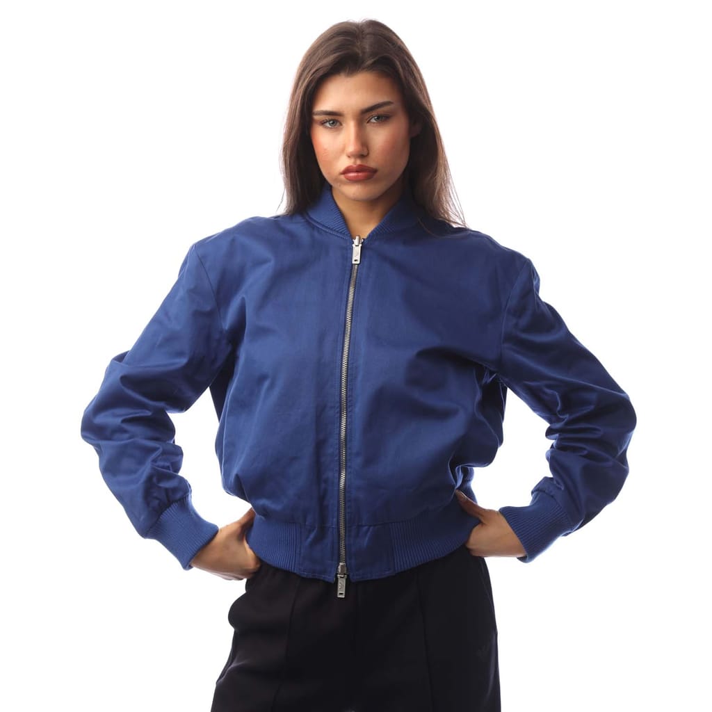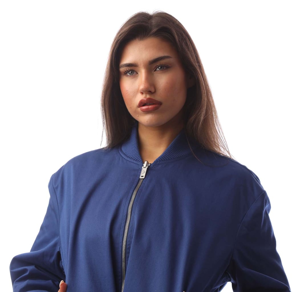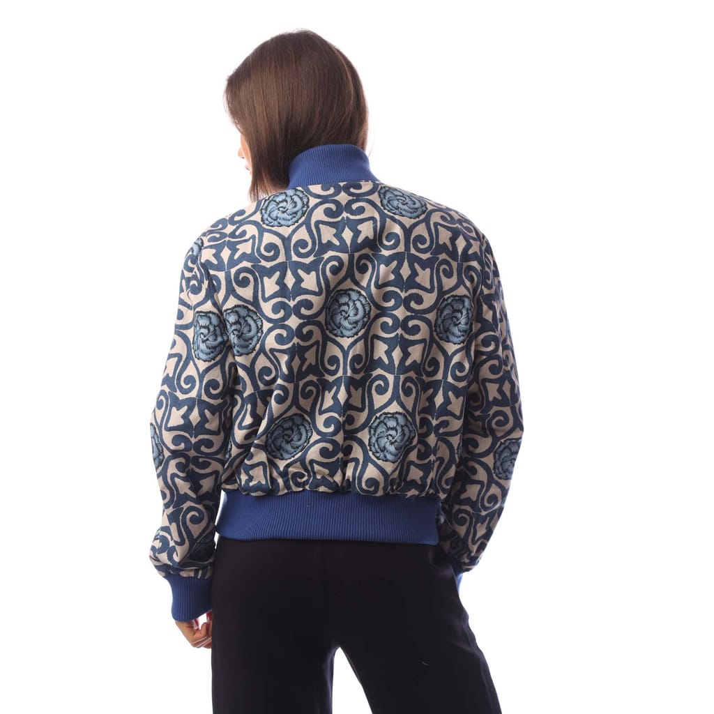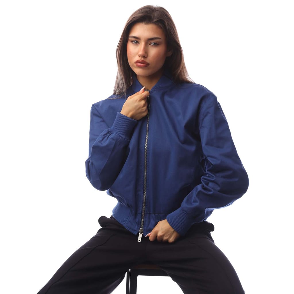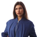 Bomber collar. Full zip fastening. Side pockets. Ribbed cuffs and hem. -