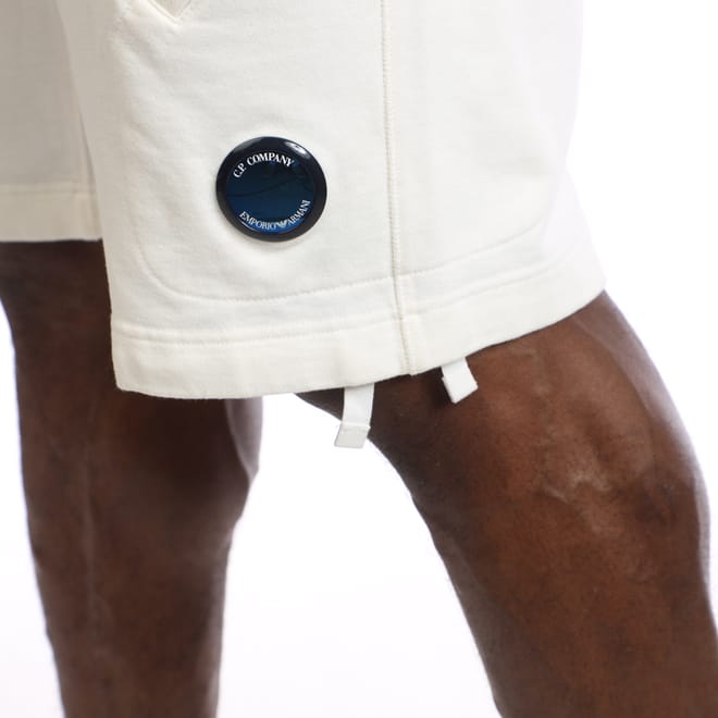 Mens C.P. Company Emporio Armani X C.P. Company Diagonal Fleece Shorts in white.