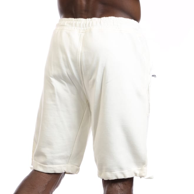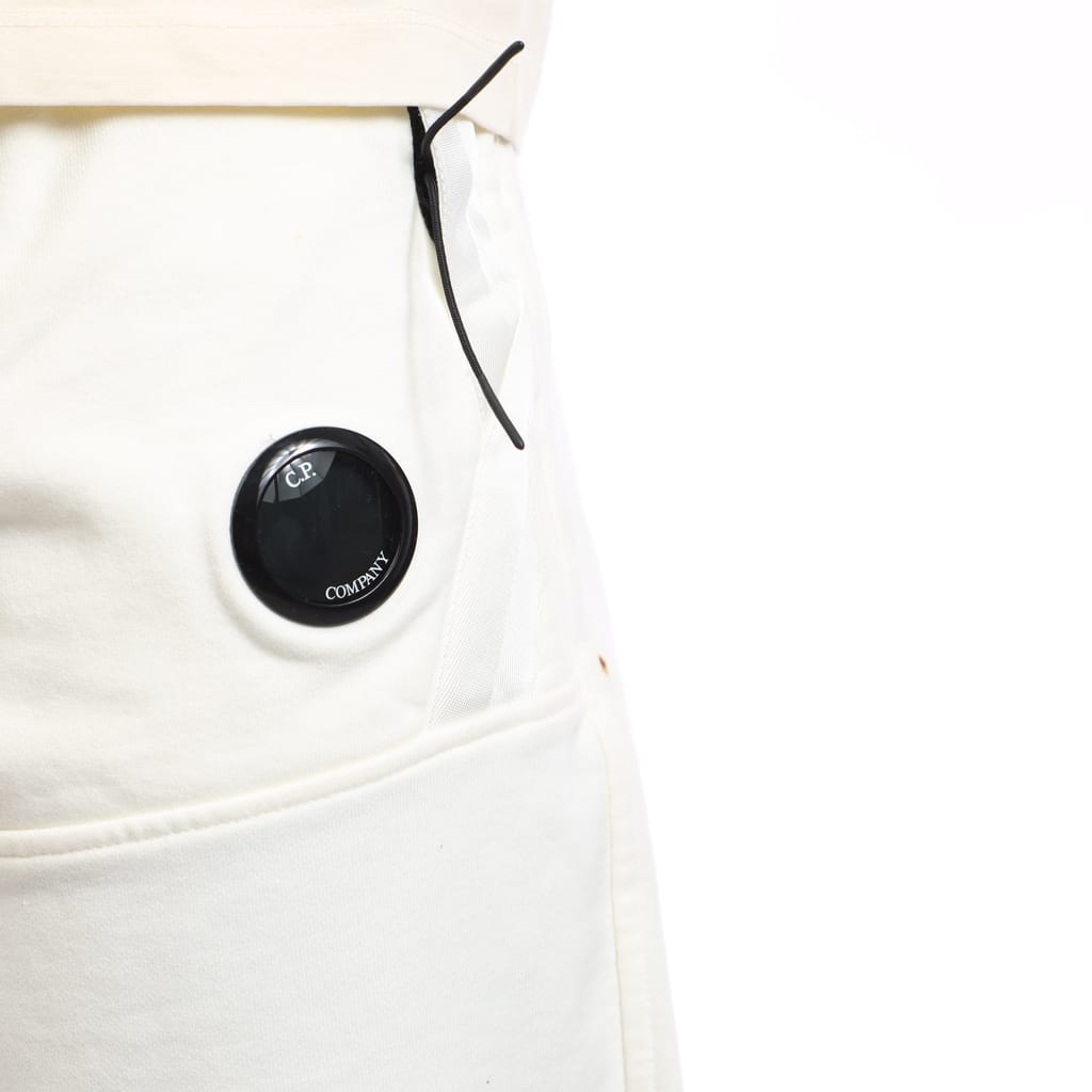 Mens C.P. Company Lens Fleece Shorts in white.