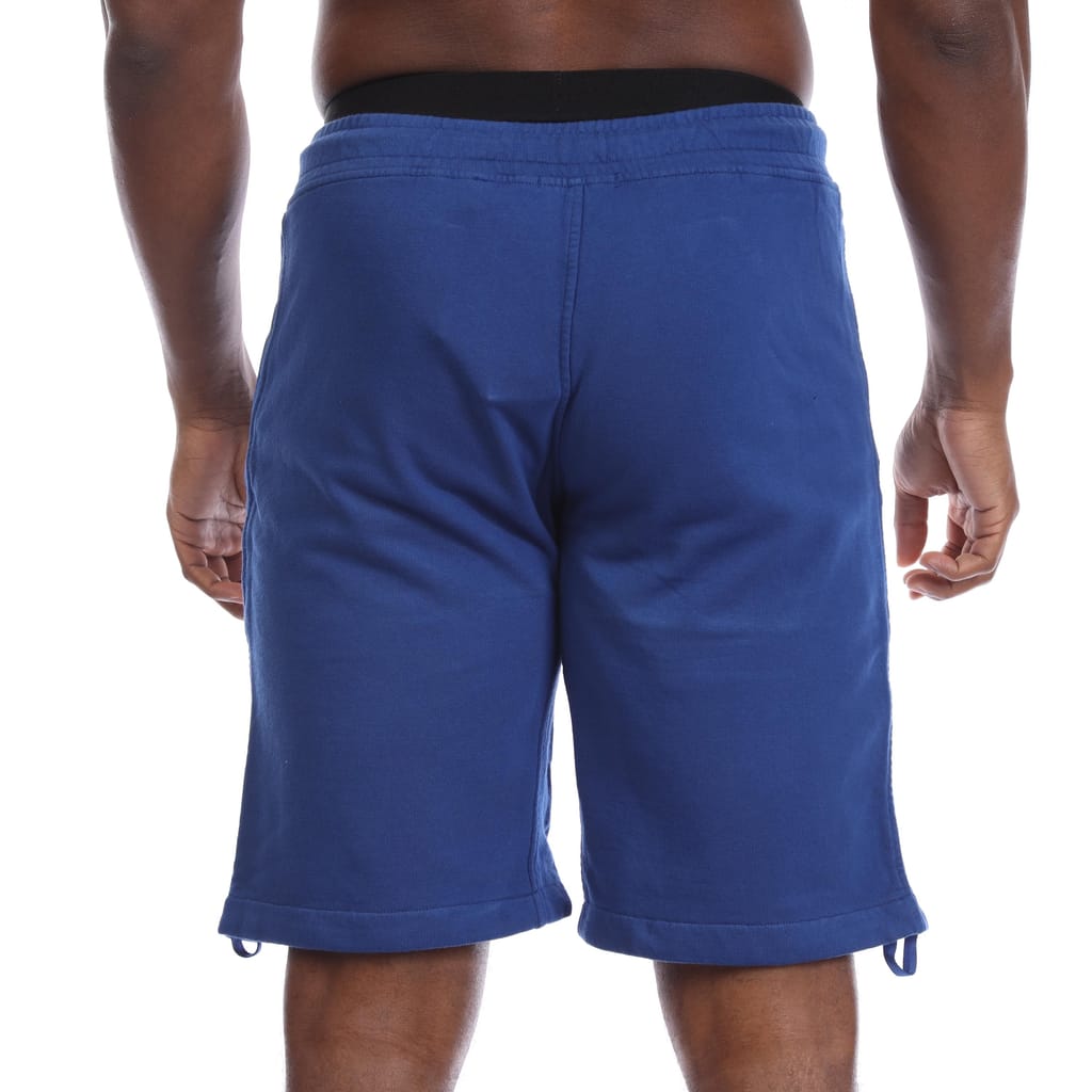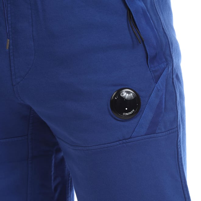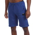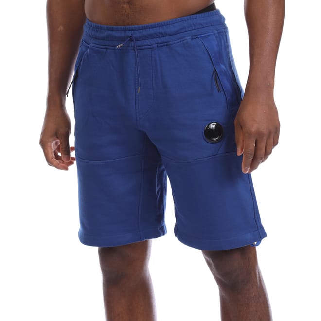 Mens C.P. Company Lens Fleece Shorts in blue.