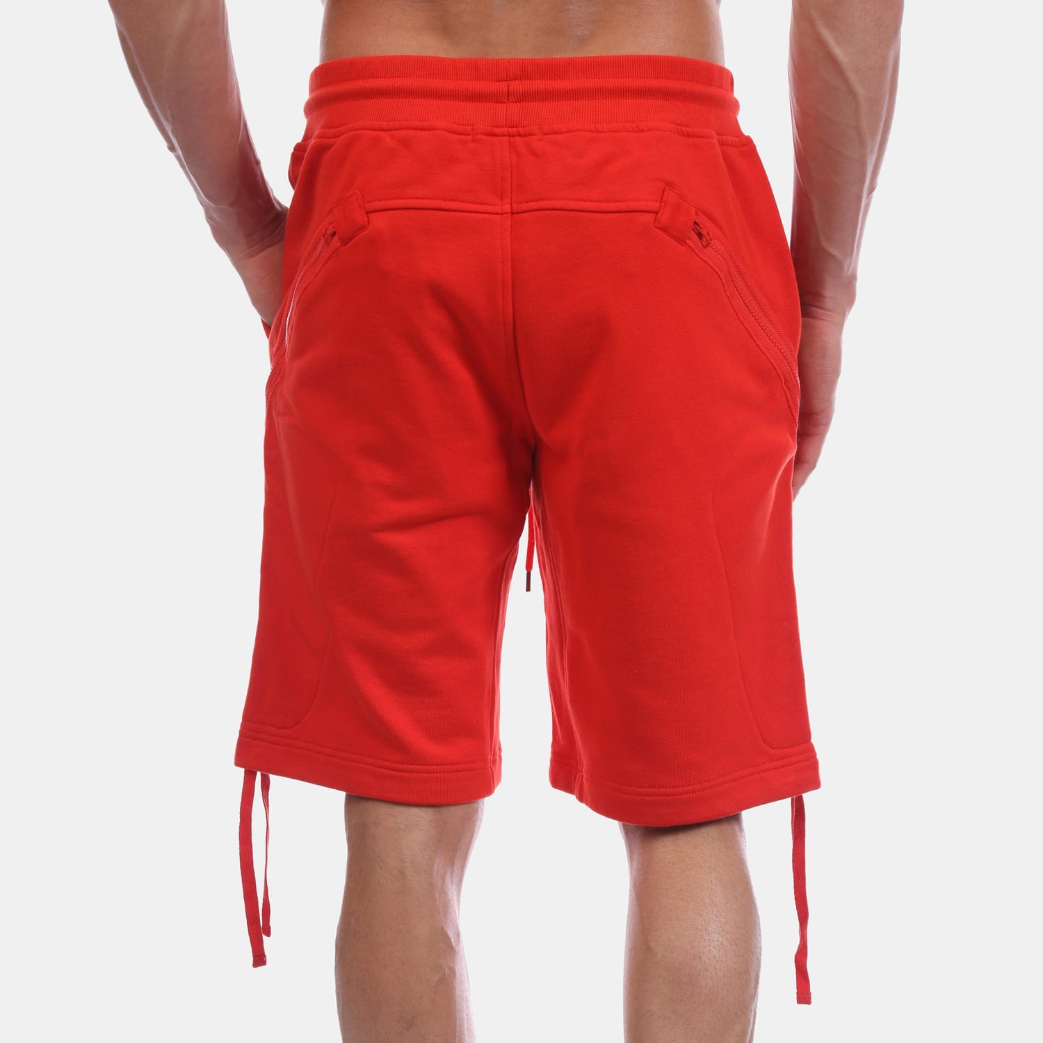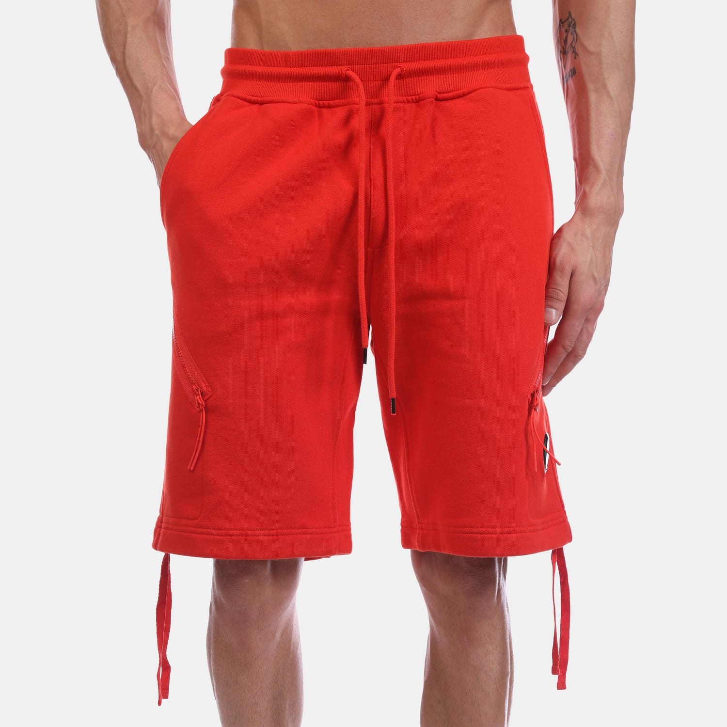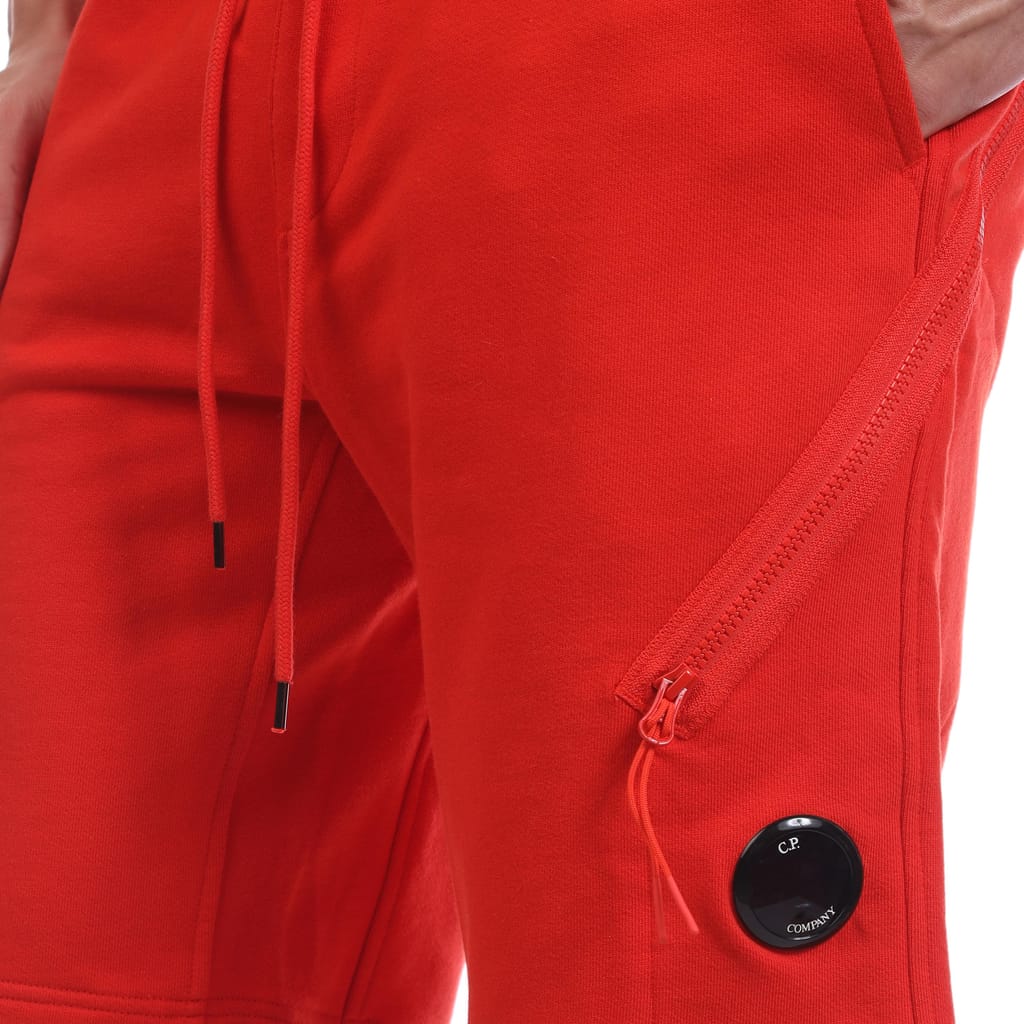 Mens C.P. Company Light Fleece Lens Shorts in red.