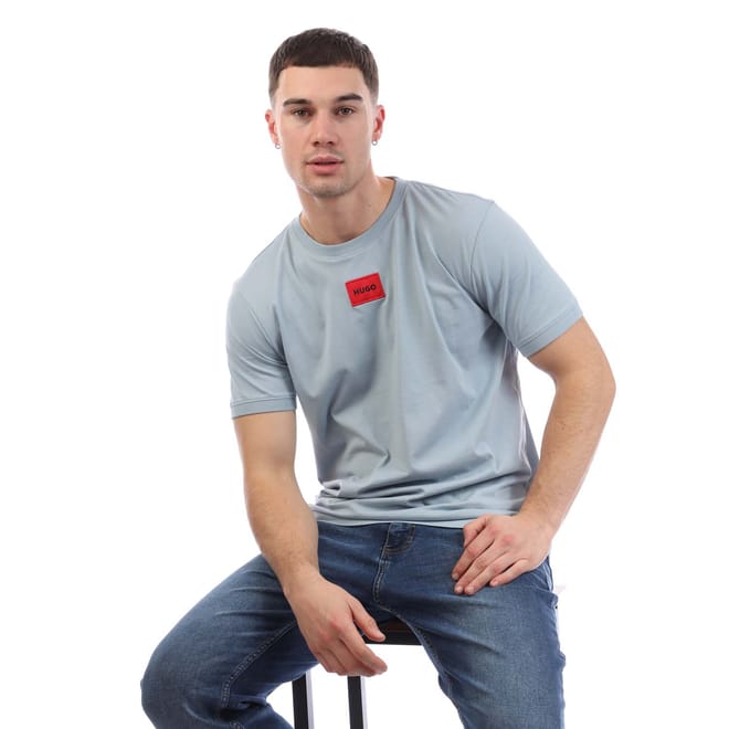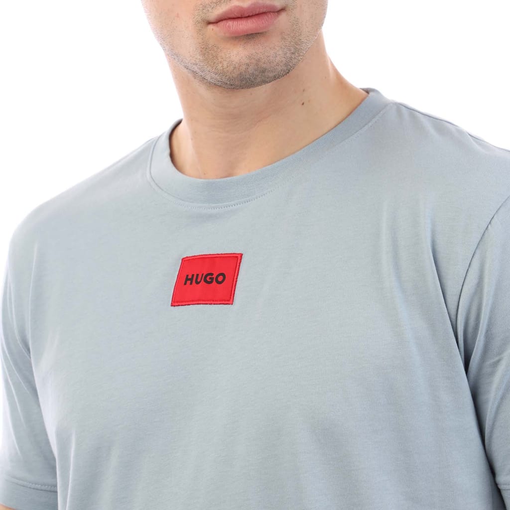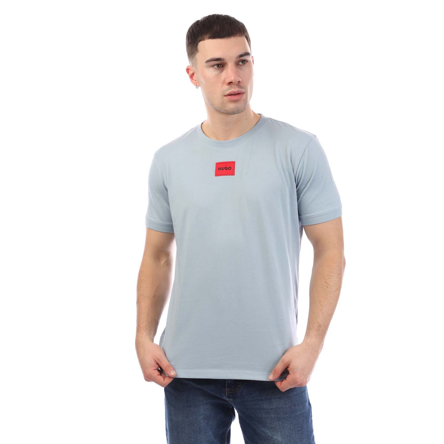 Mens HUGO Diragolino 212 Cotton Jersey T-Shirt with logo label in open blue.