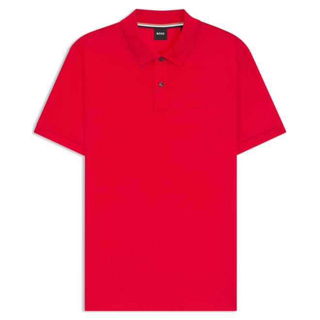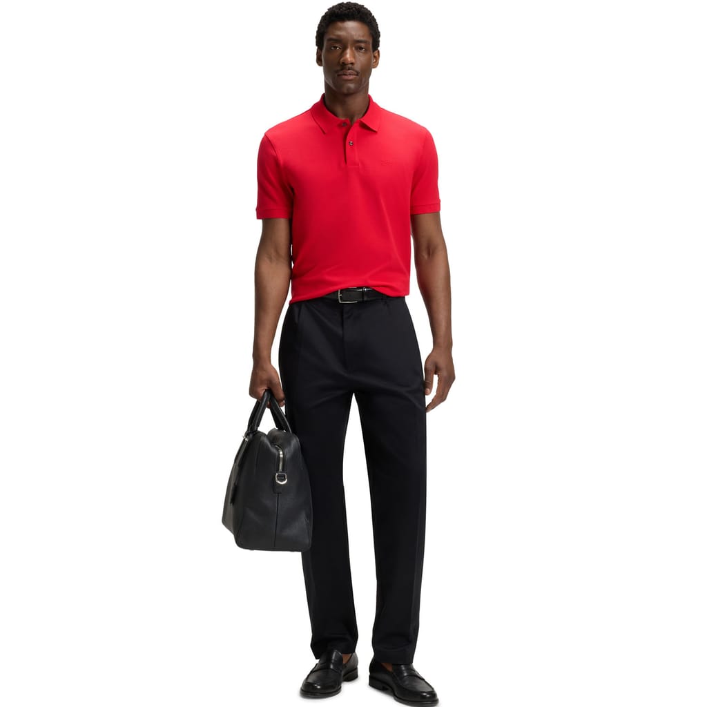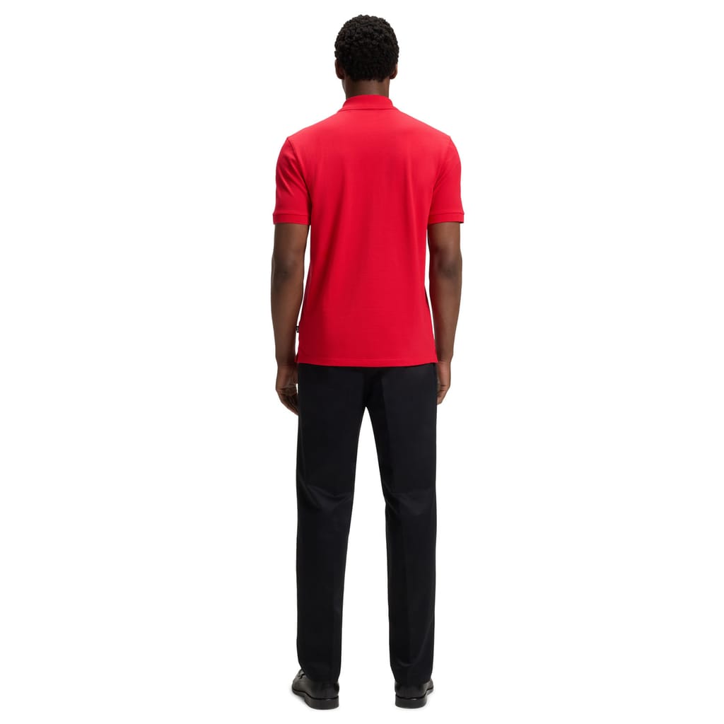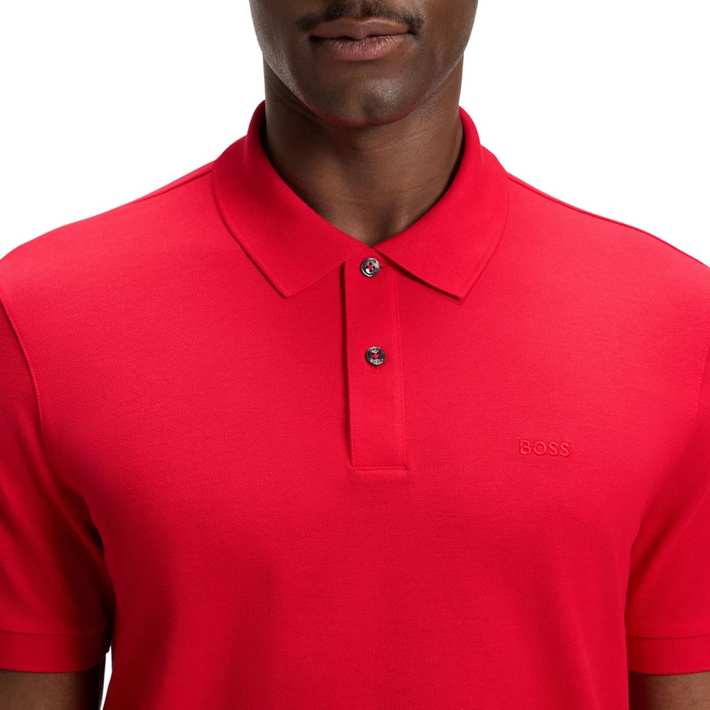 Mens BOSS Pallas Polo Shirt in Cotton Pique with logo details in medium red