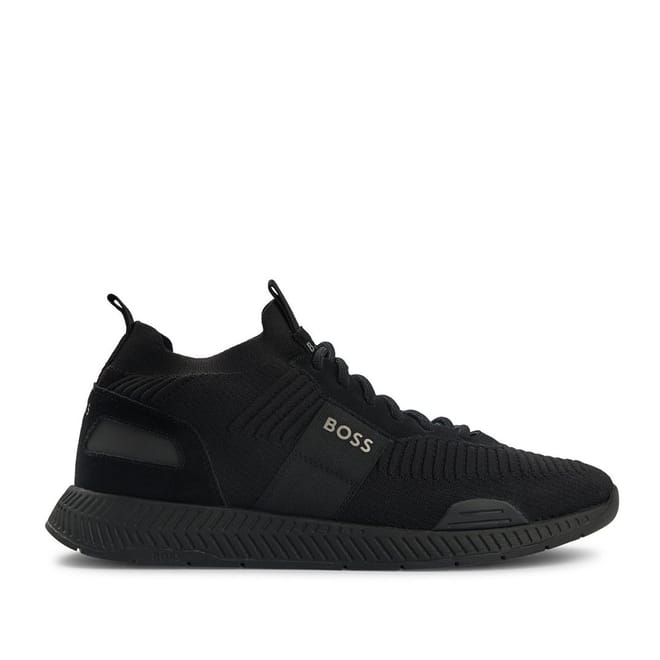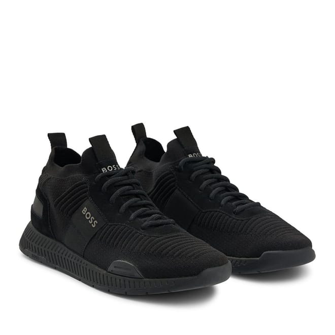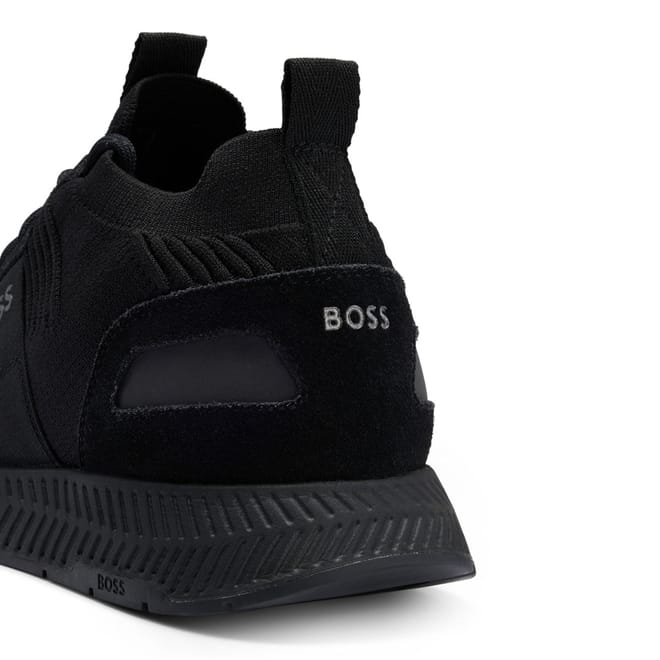 Trend-driven trainers by boss, inspired by running footwear and updated with athleisure styling. Built on an eva-rubber sole with a modern silhouette, these lightweight trainers feature a knitted sock and hybrid uppers in webbing and suede with elastic overlays. This fully lined pair is detailed with understated metallic branding and twin pull-loops. -