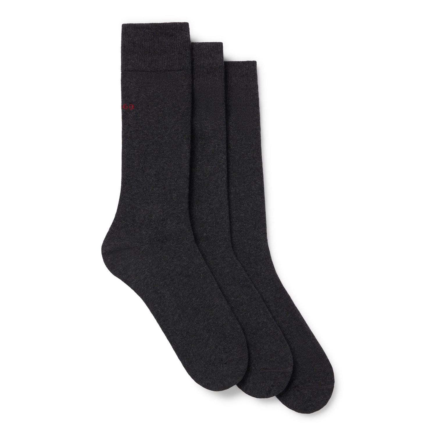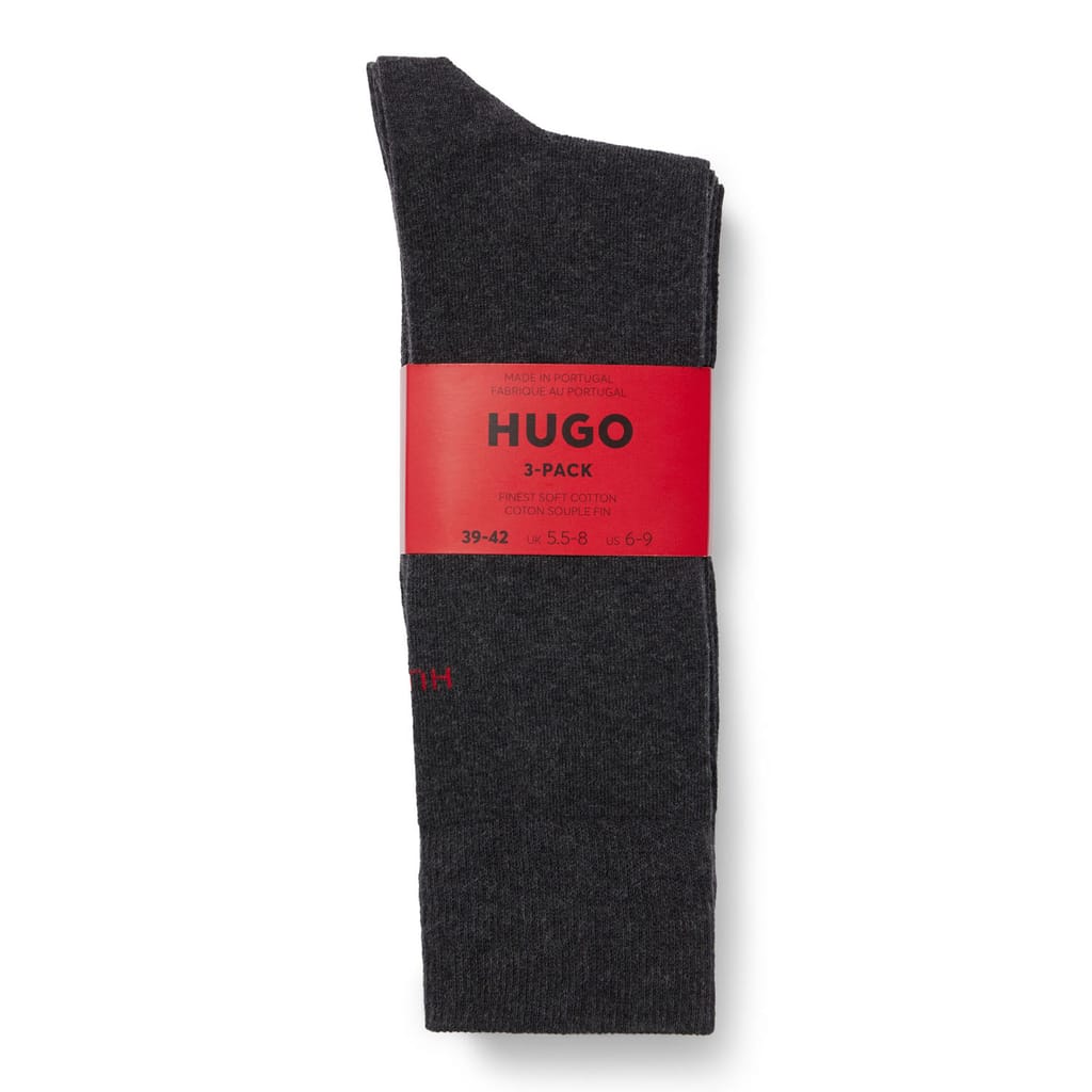 Mens HUGO Three-Pack of Cotton Blend Socks in a Regular Length in charcoal