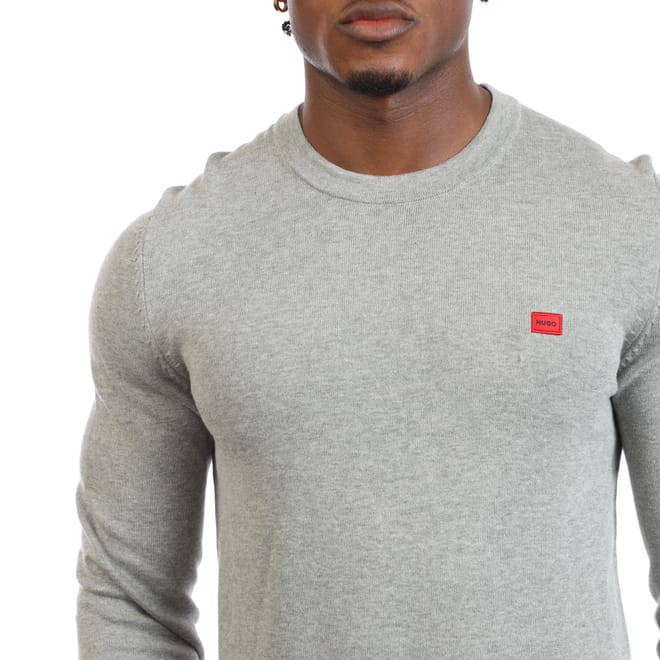 Mens HUGO San Cassius-C1 Cotton Sweater with Red Logo Label in light / pastel grey