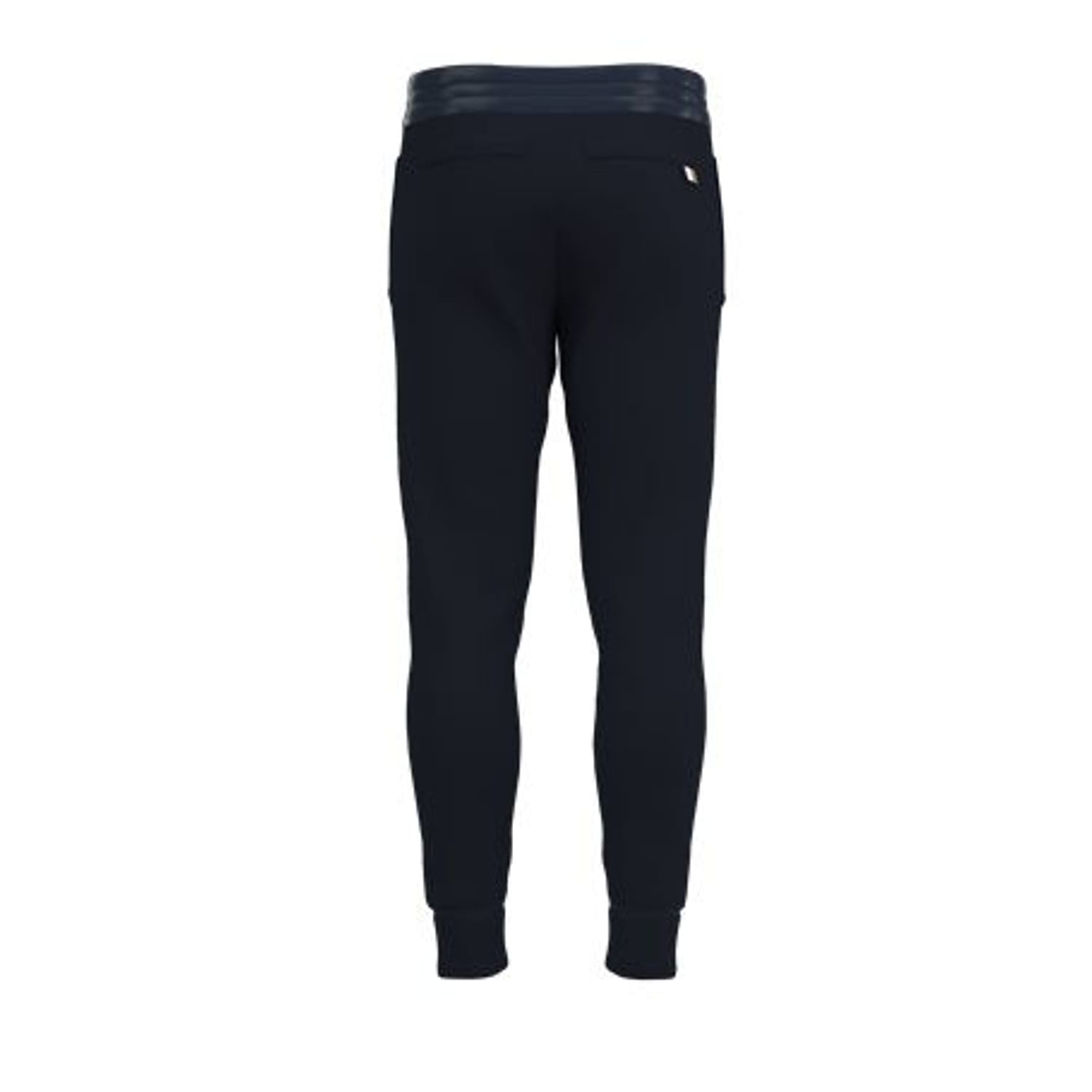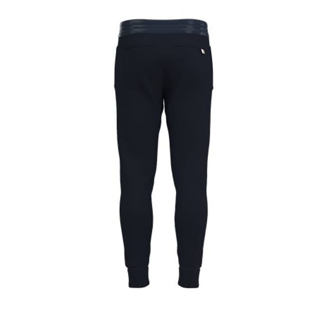 double face trousers / accent colour fully inside / nylon at back waistband and side pockets / faux fly detailing / flat locking at seams / iconic flag label at back faux pocket -