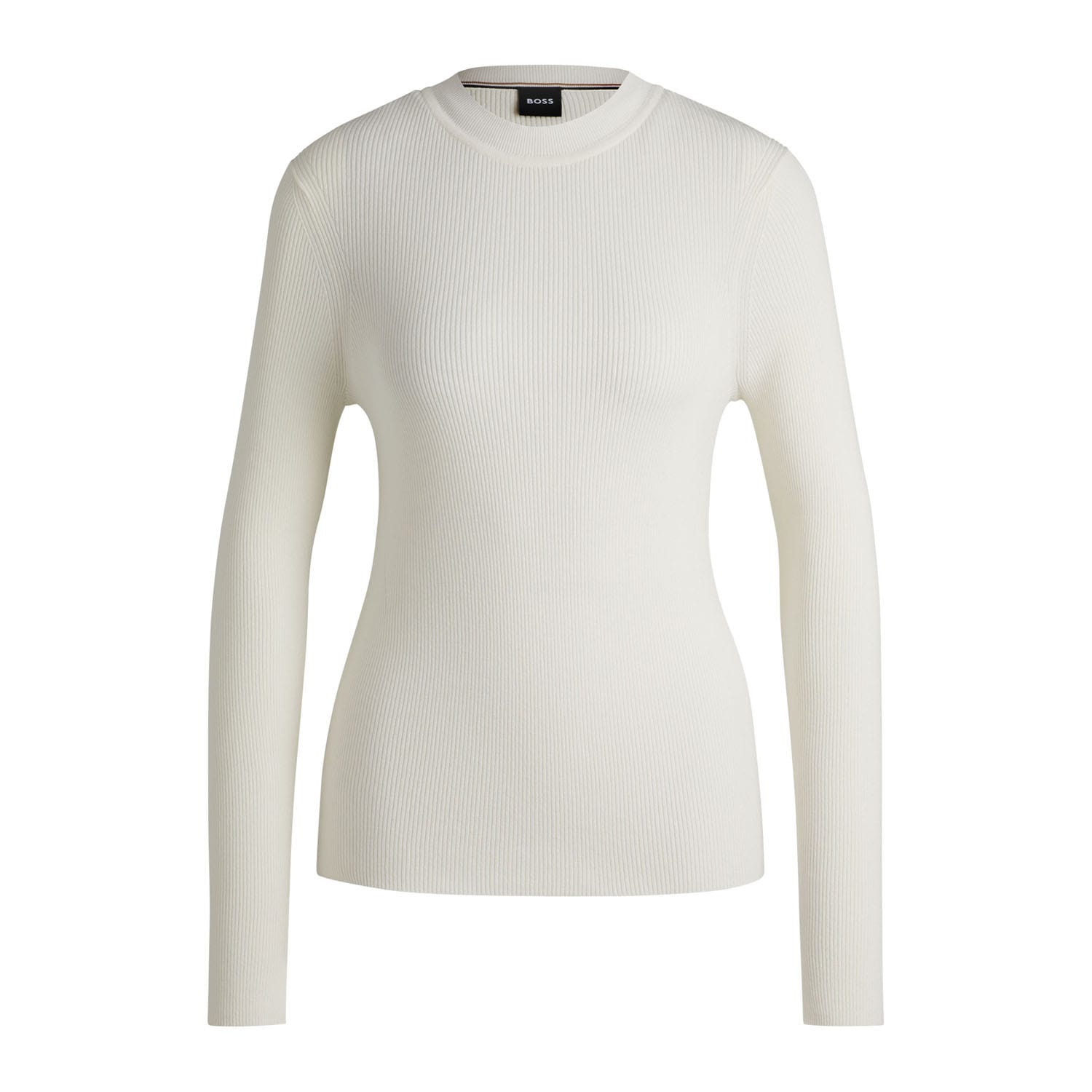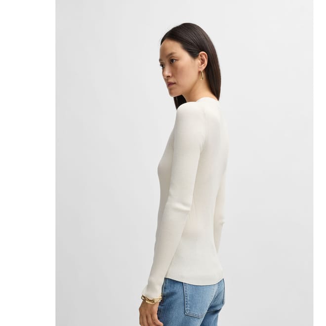 Womens BOSS Feskiera Knitted Sweater with Ribbed Structure in open white