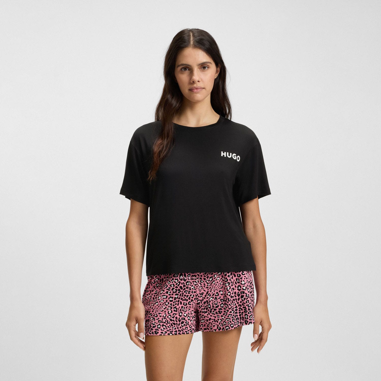 Womens HUGO Unite Contrast-Logo Pyjama T-Shirt in Stretch Jersey in black