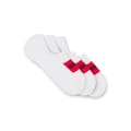 Mens HUGO Three-pack of invisible socks with red logos in white.