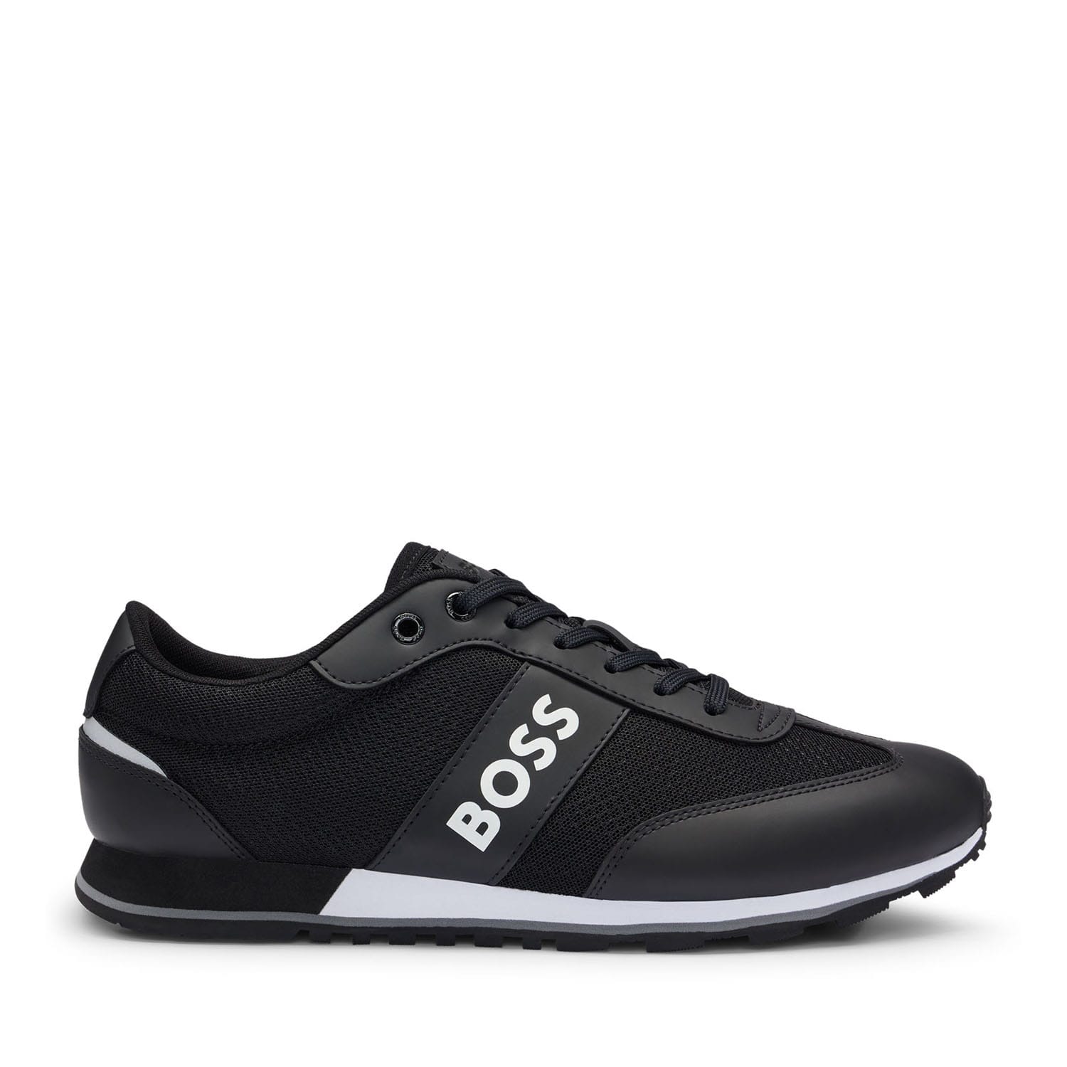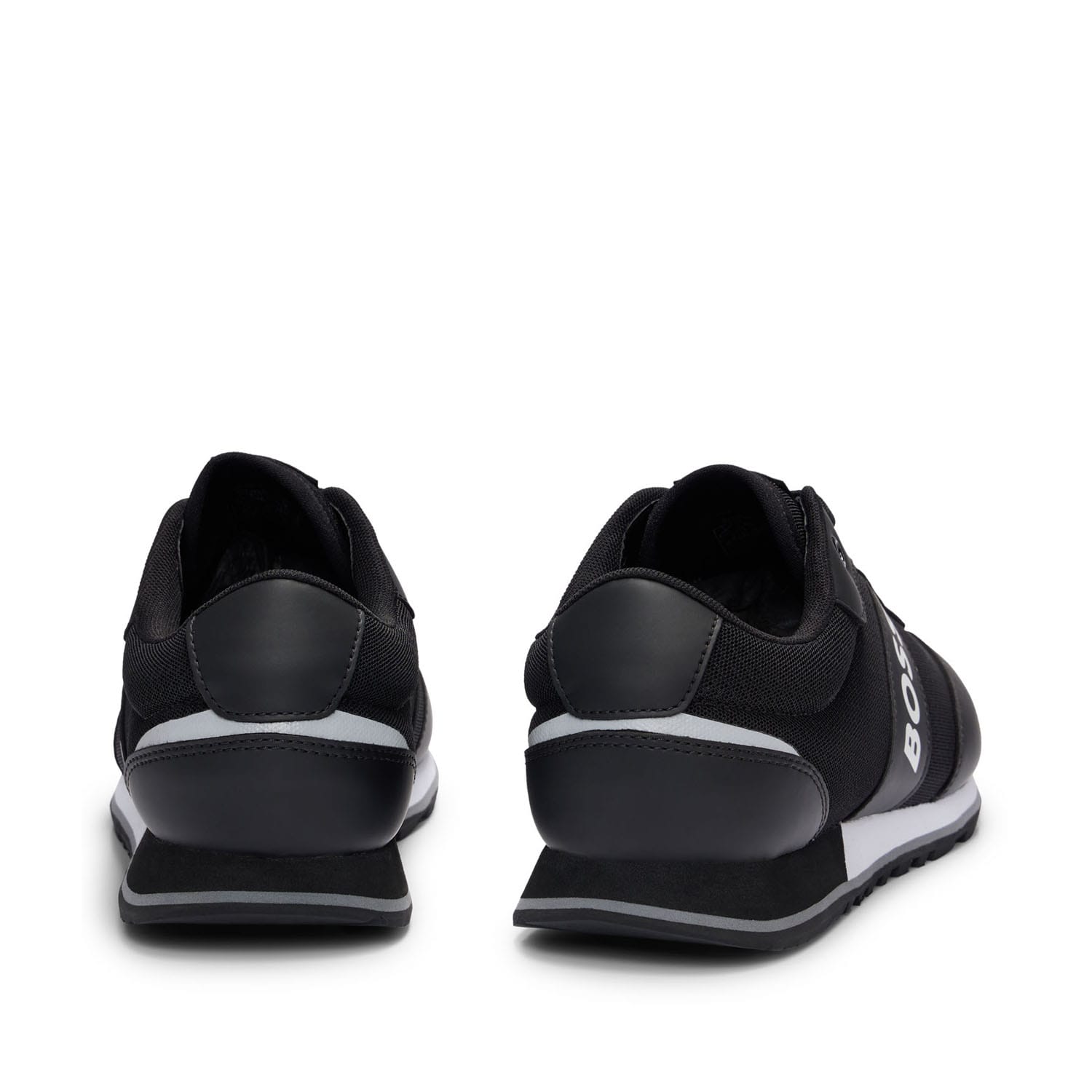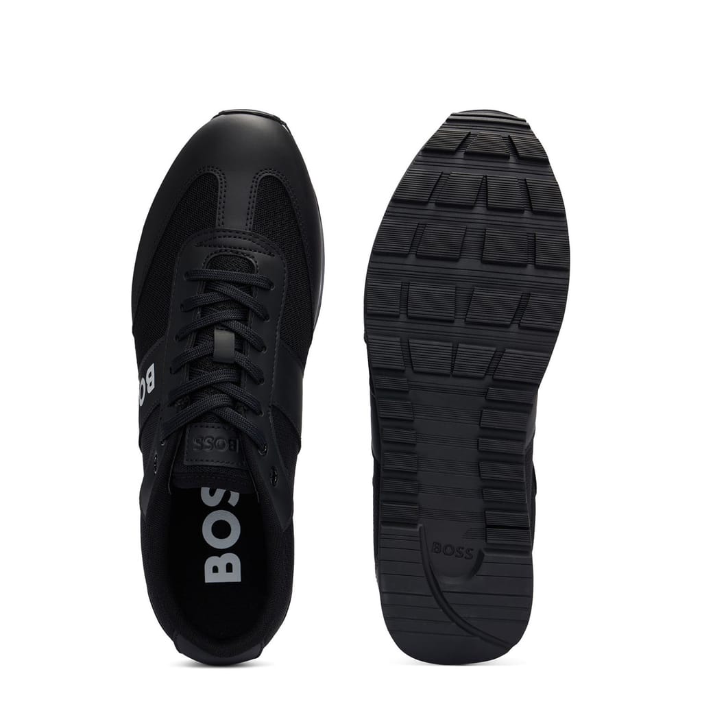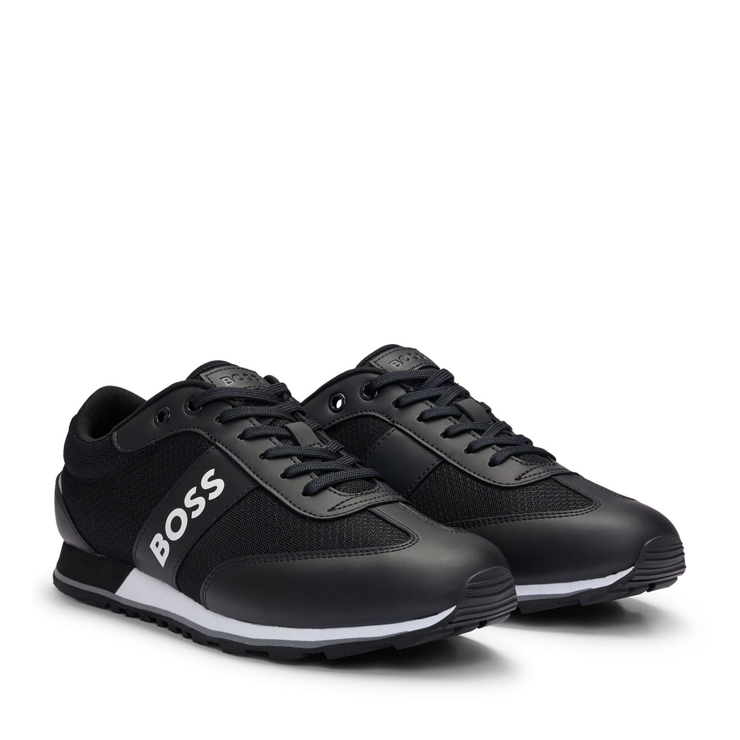 Mens BOSS Parkour Mixed Material Trainers with Branding and Mesh in black