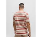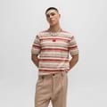 A modern T-shirt by HUGO Menswear, cut to a straight fit in cotton jersey with three-coloured horizontal stripes and a red logo label.