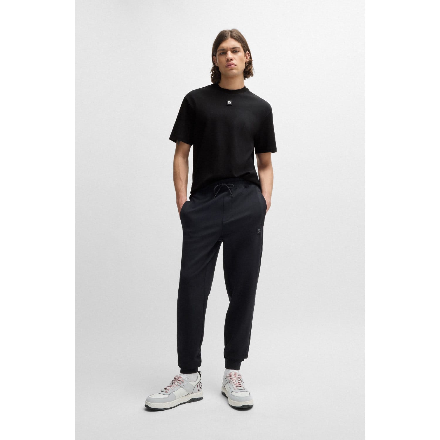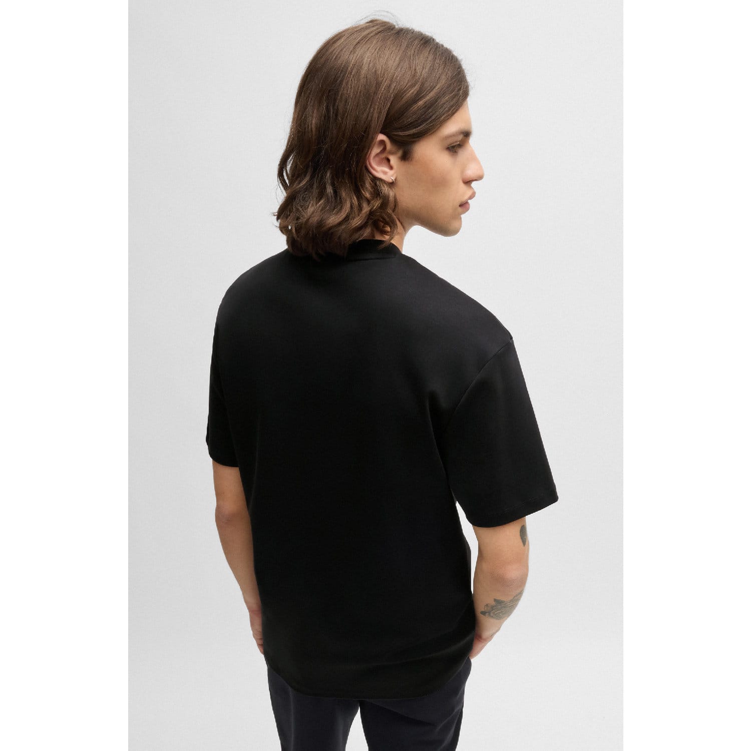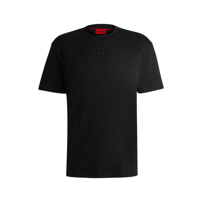 Mens HUGO Dalile Stacked-Logo T-Shirt in interlock cotton in black.