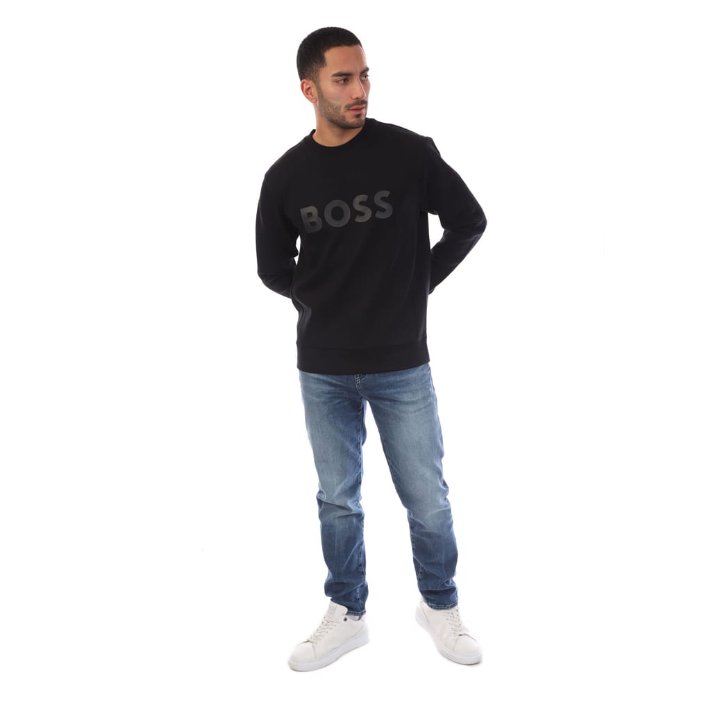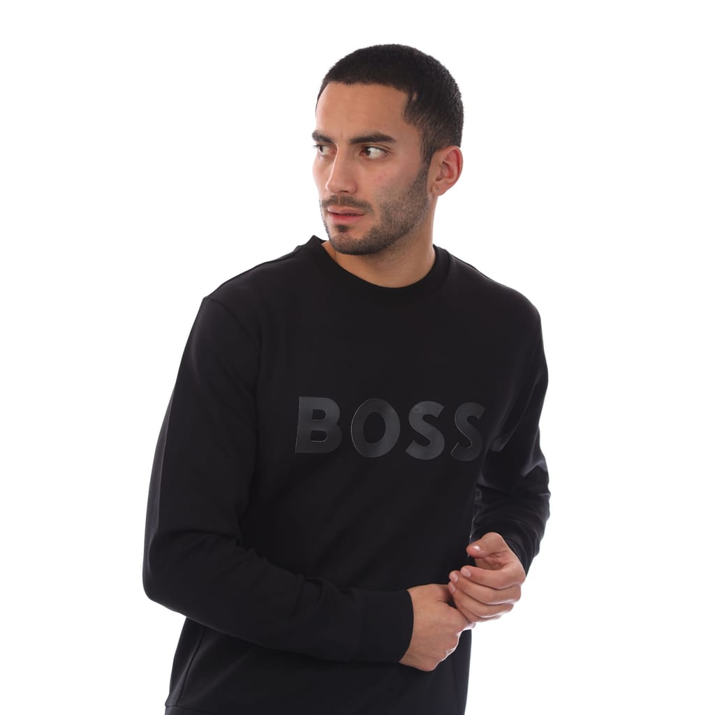 Mens Boss Salbo Stretch Sweatshirt with Sandwich Logo in black.