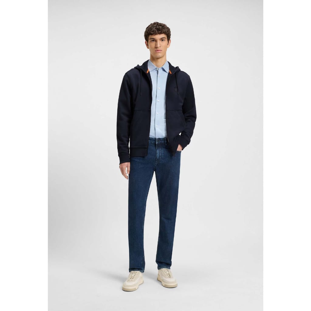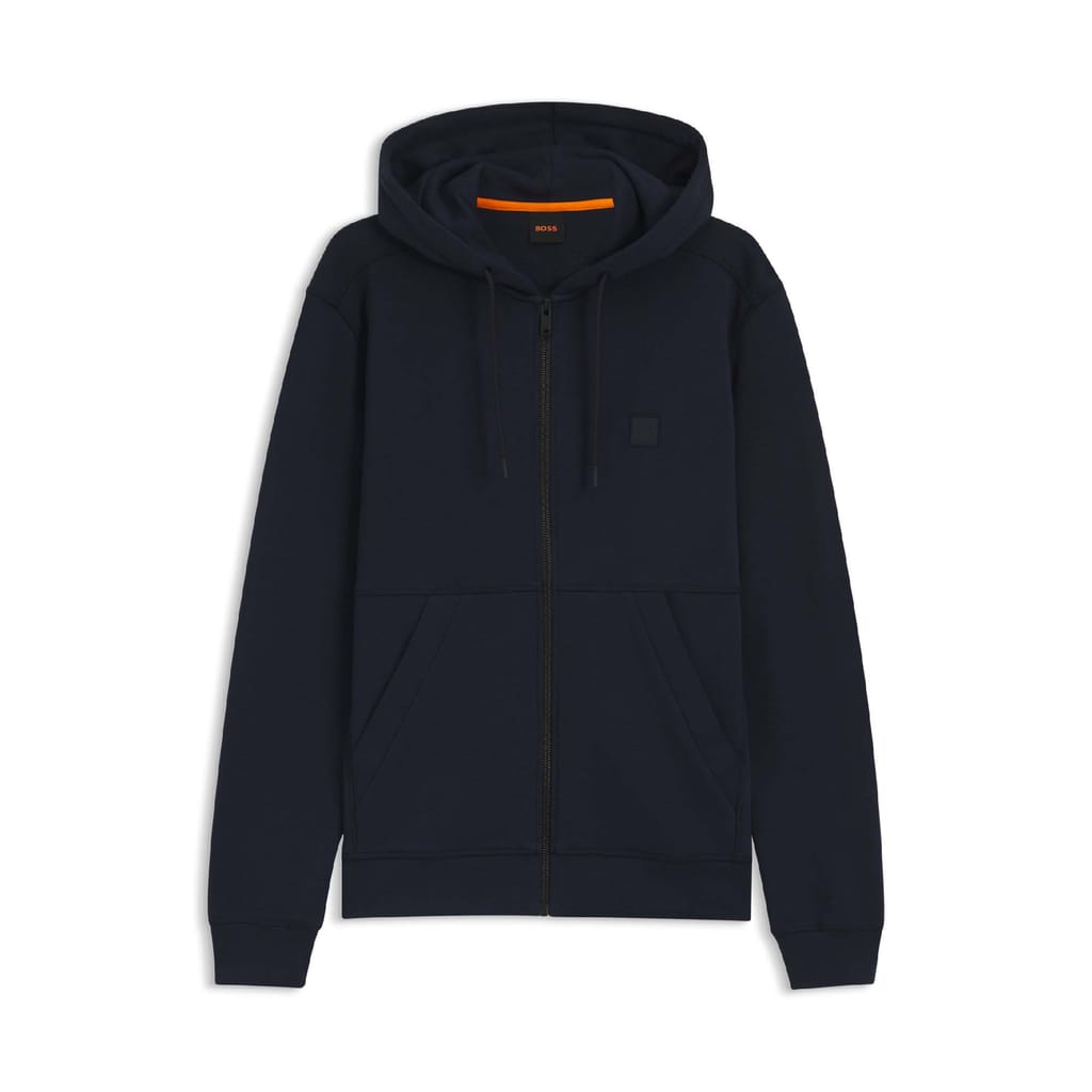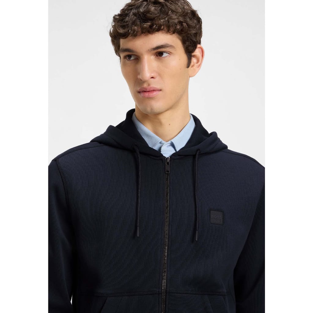 Mens BOSS Zetalky Cotton Terry Zip Up Hoodie with Tonal Logo Patch in dark blue