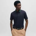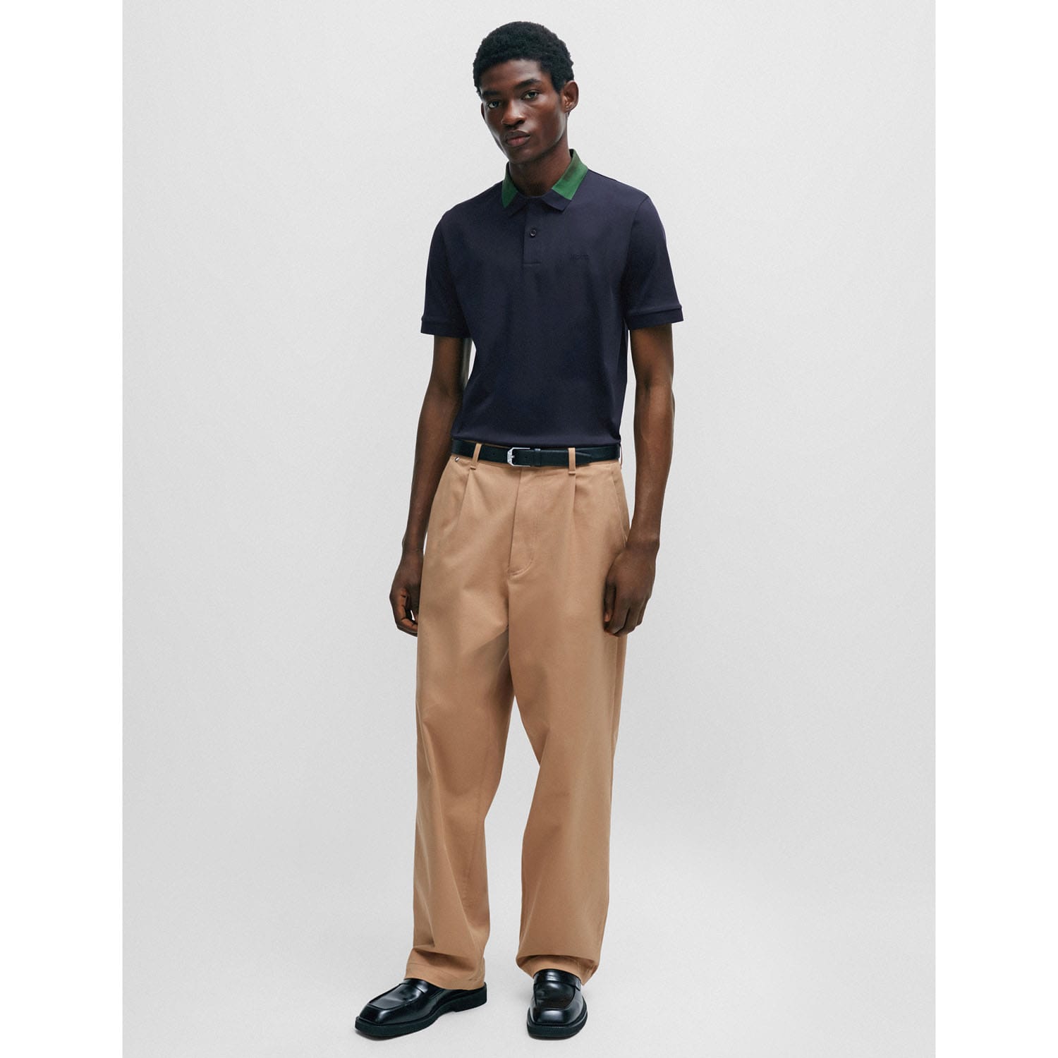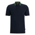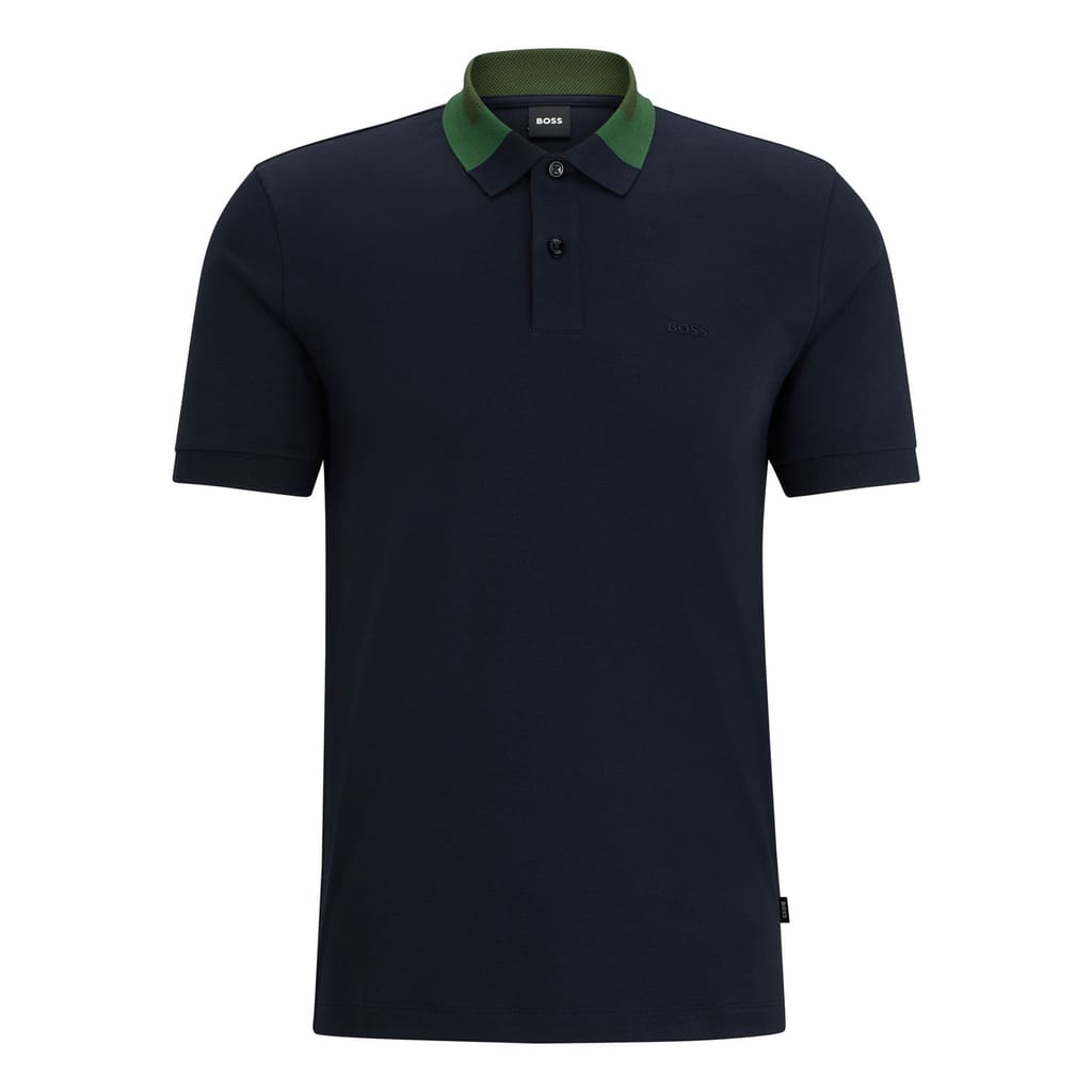 Mens BOSS Phillipson 116 Interlock Cotton Slim Fit Polo Shirt with colour-blocked collar in dark blue.