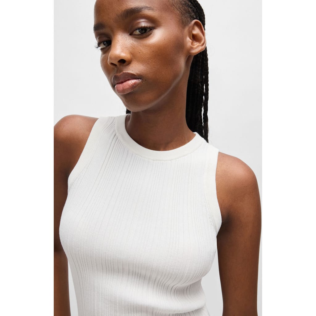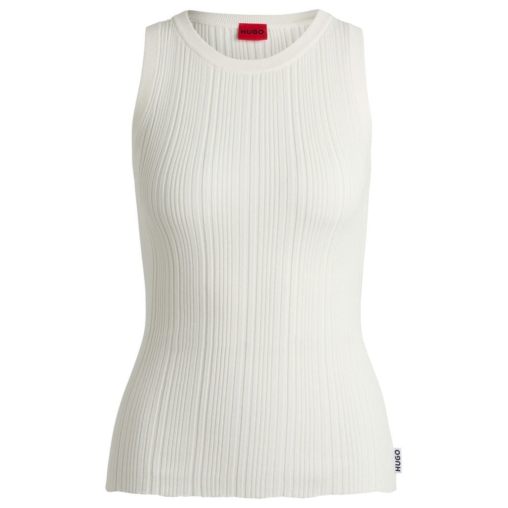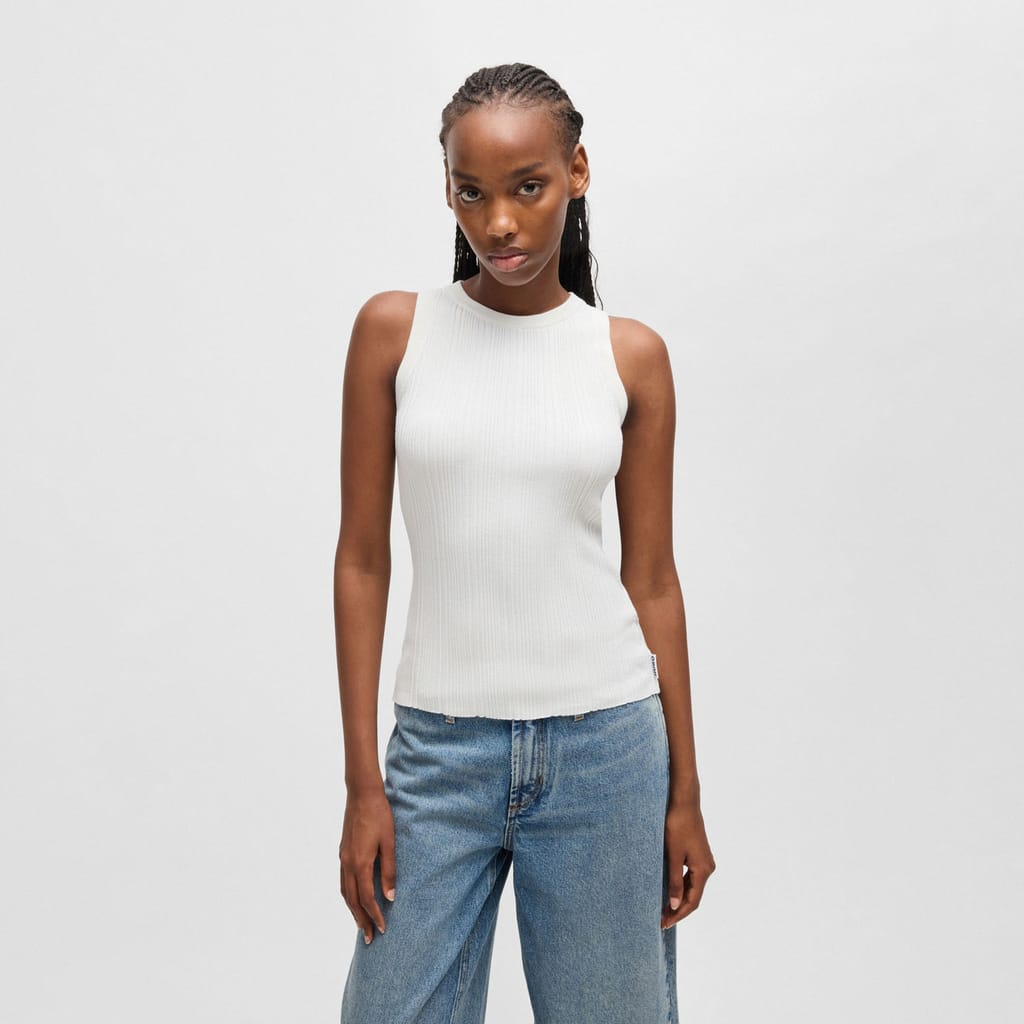 A sleeveless top with an irregular rib by HUGO Womenswear. Cut to a slim fit, this piece is crafted in more responsible crepe.