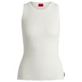 Womens HUGO Sareple Irregular Rib Top in a slim fit in natural