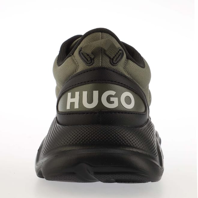Mens HUGO Leon Running-Inspired Trainers with contrast details in dark green.