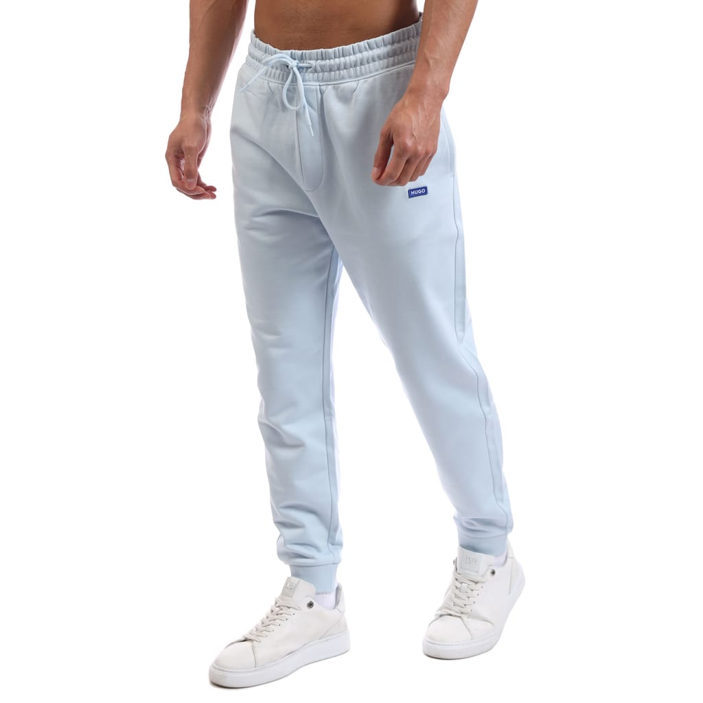 Mens HUGO Napin Cotton-Terry Tracksuit Bottoms with blue logo patch in open blue