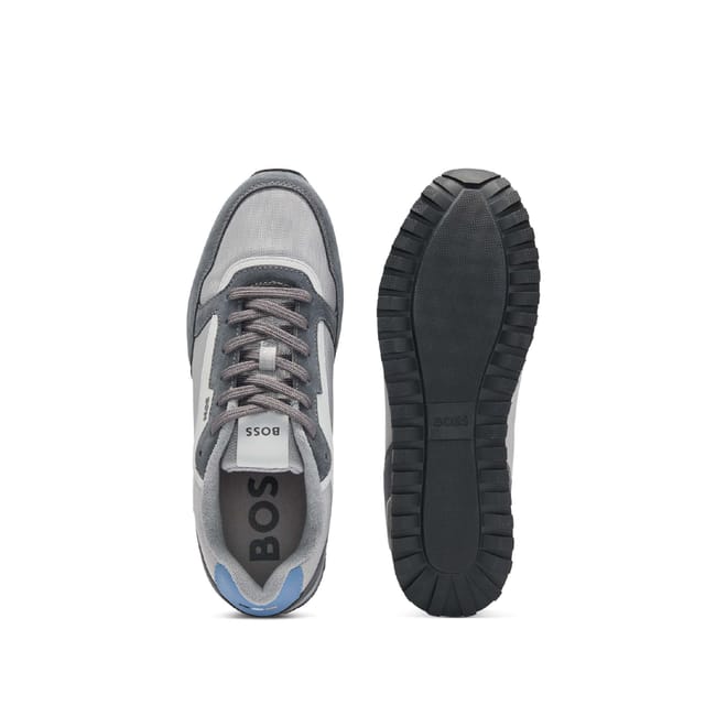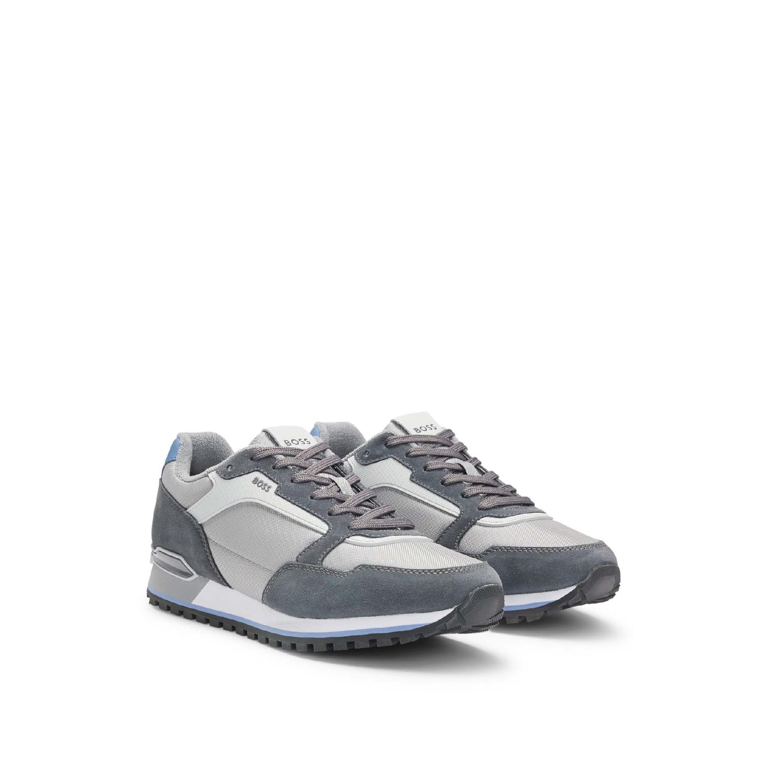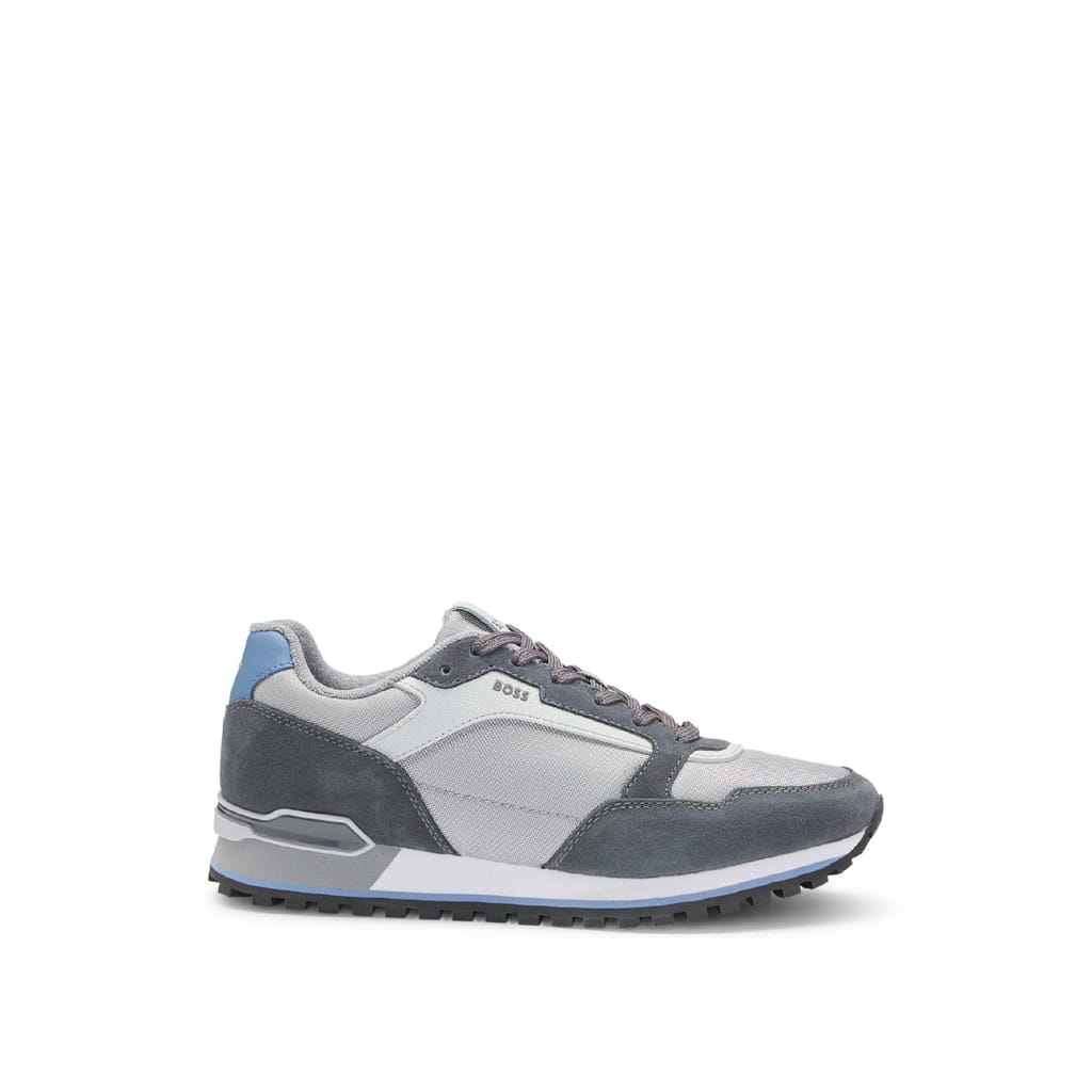 Mens BOSS Parkour-L Trainers with Suede and Fabric in medium grey