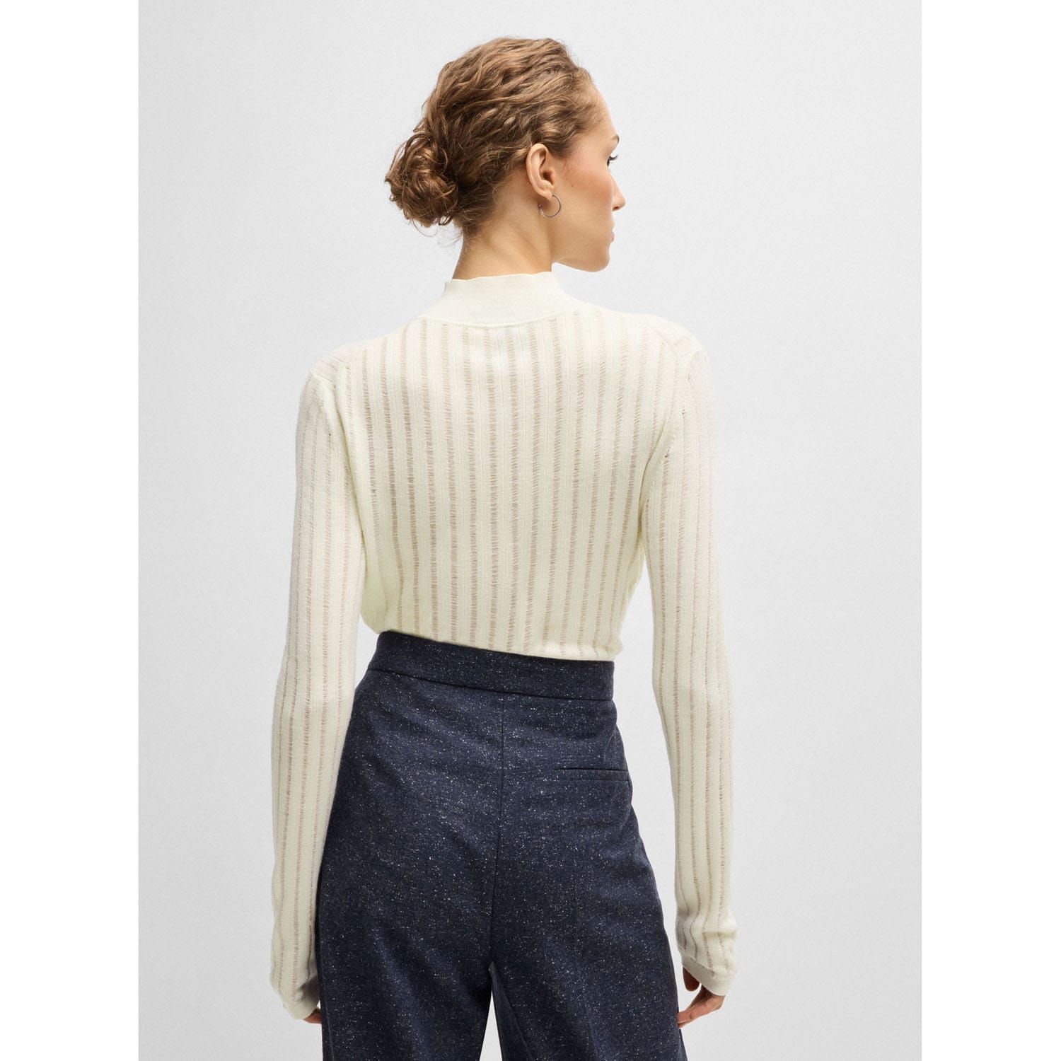 An elegant sweater by BOSS, designed with a mock neckline. This piece is knitted with structured stripes for modern style. This product is made with responsibly sourced wool.
