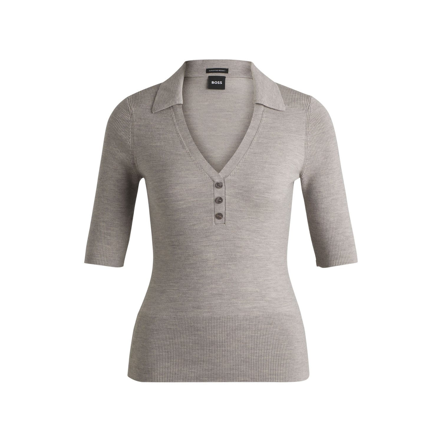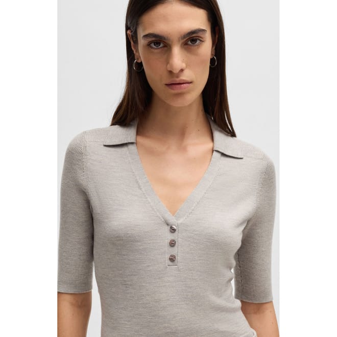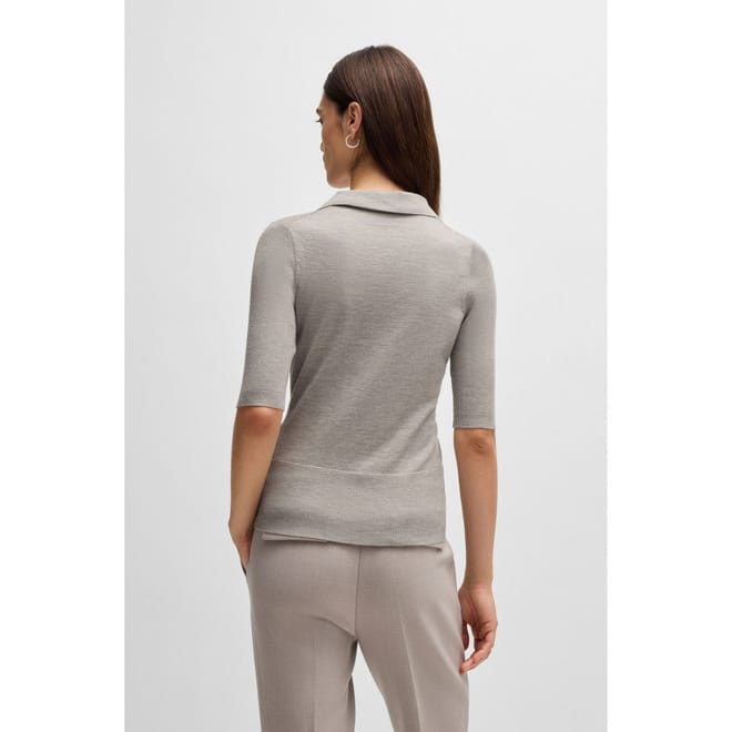 A polo-collar sweater with a button placket by BOSS. This versatile piece is crafted in a responsibly sourced wool blend for temperature regulation.
