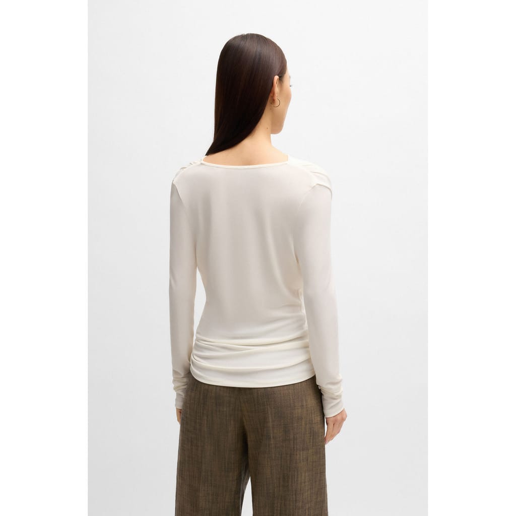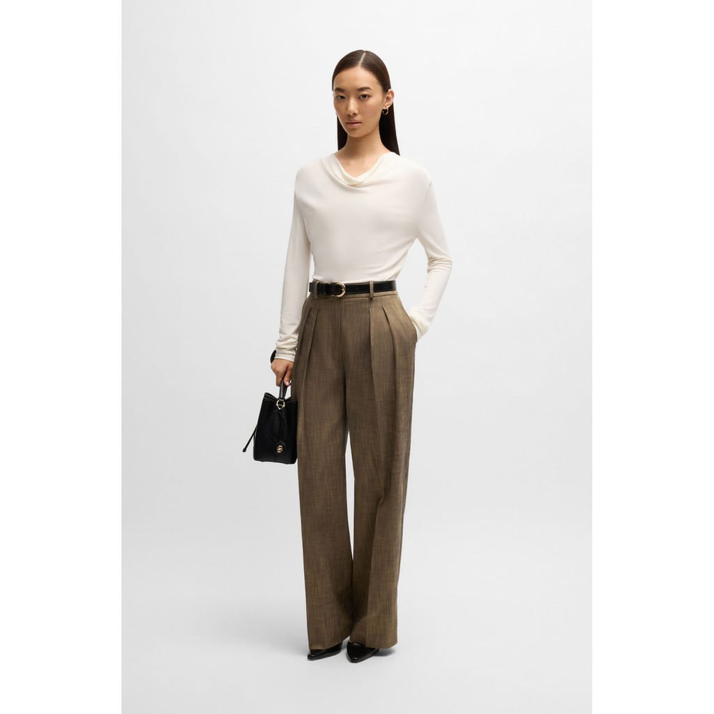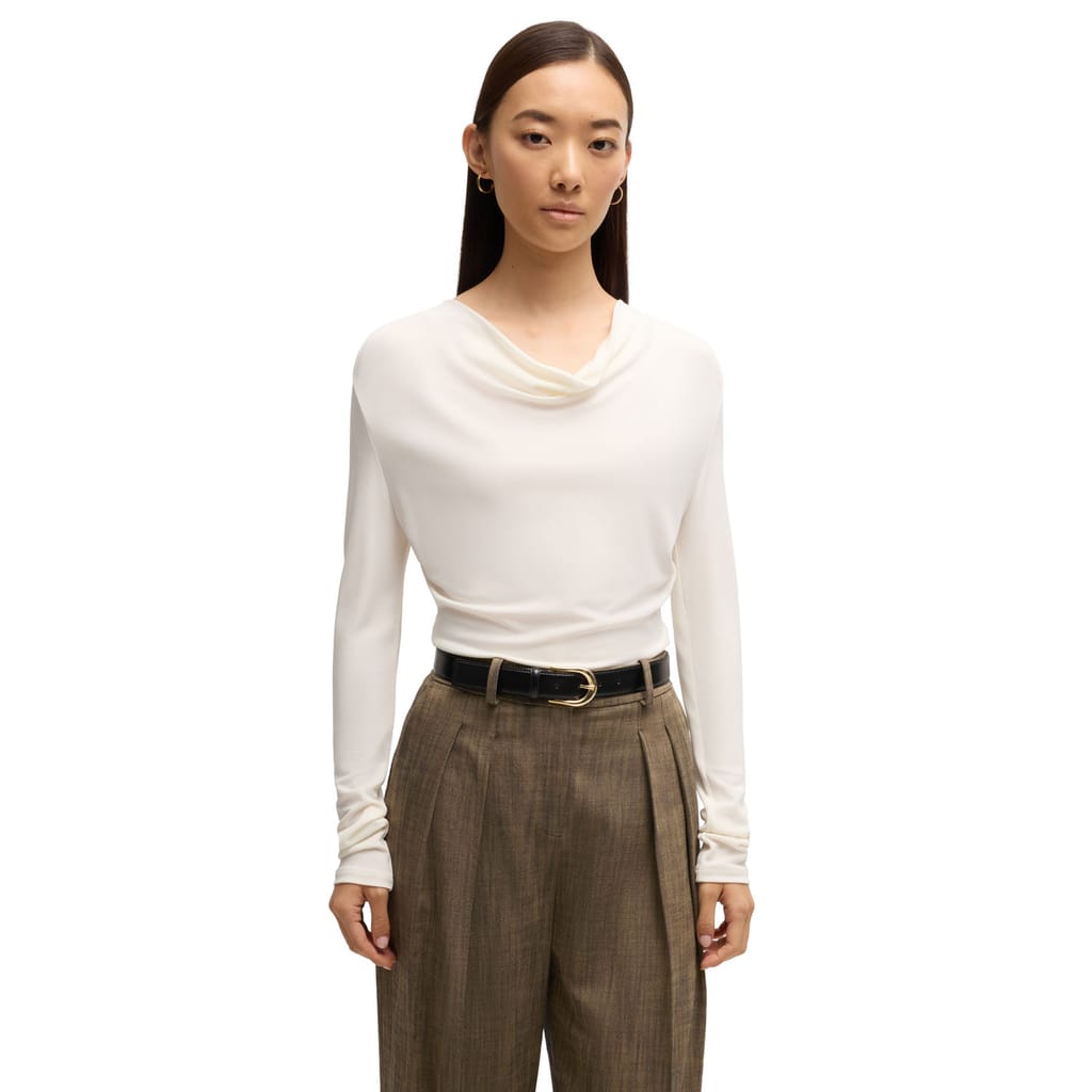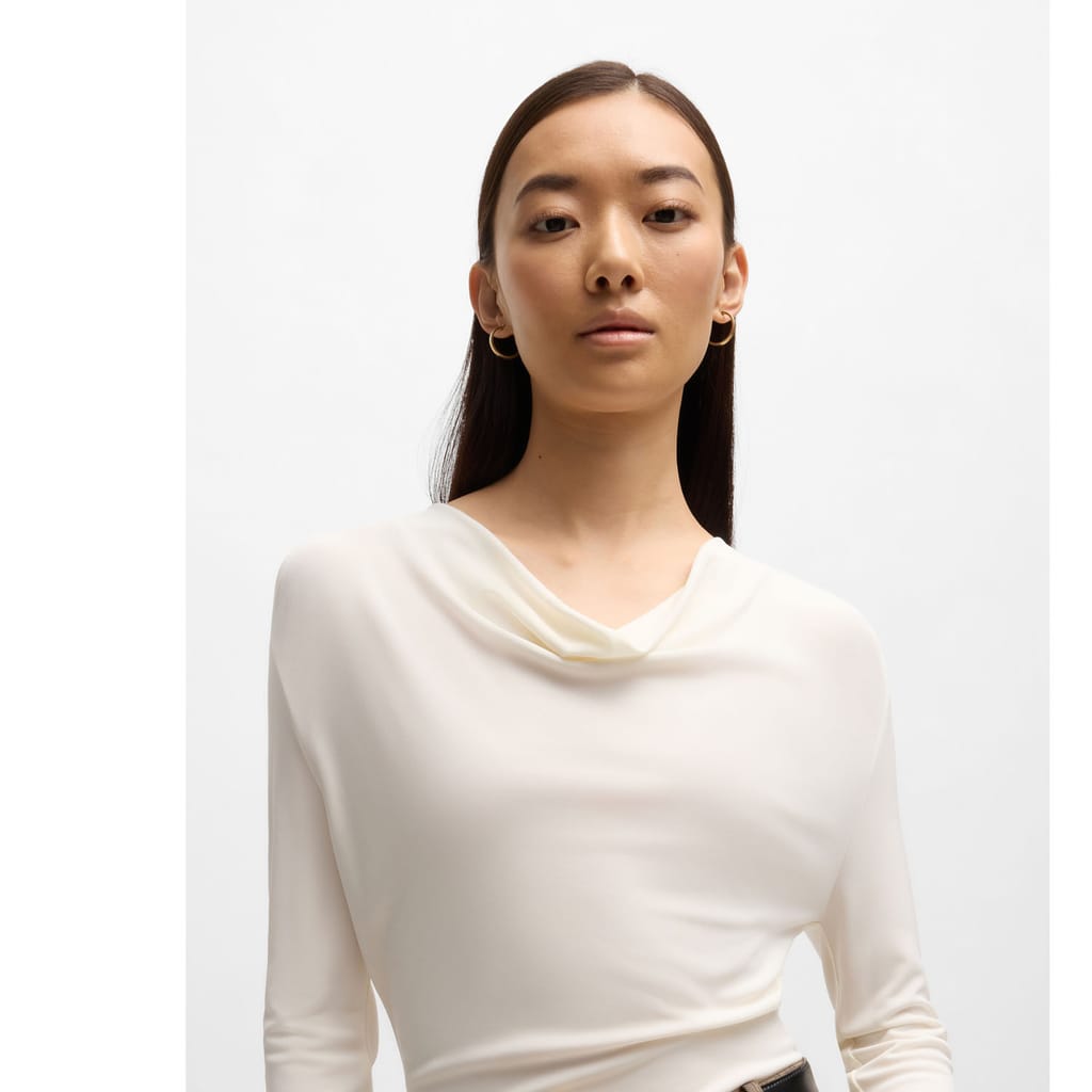A long-sleeved top in more responsible stretch crepe by BOSS. This elegant piece is topped with a cowl neckline.