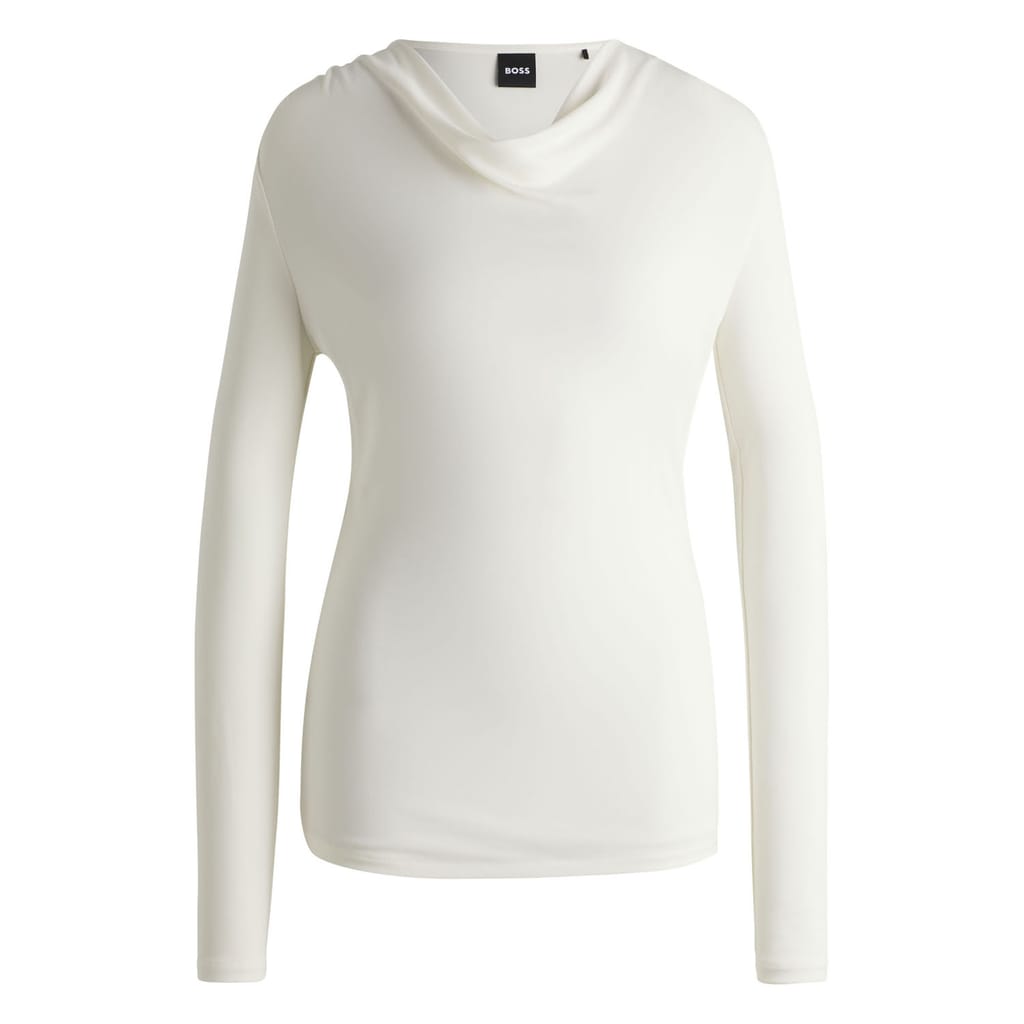 Womens BOSS Eseyana Cowl Neck Top in Stretch Crepe in open white