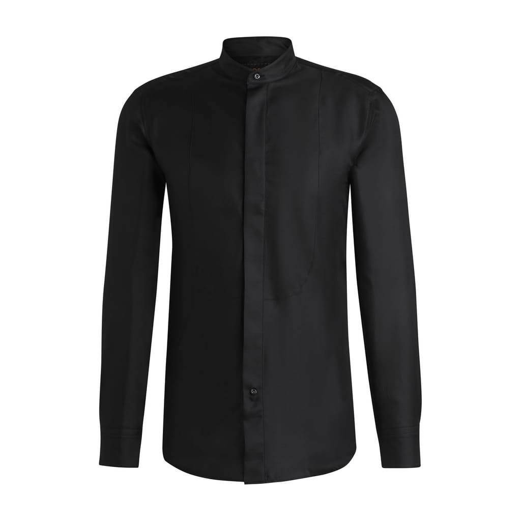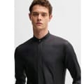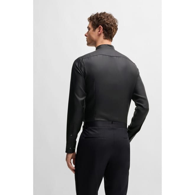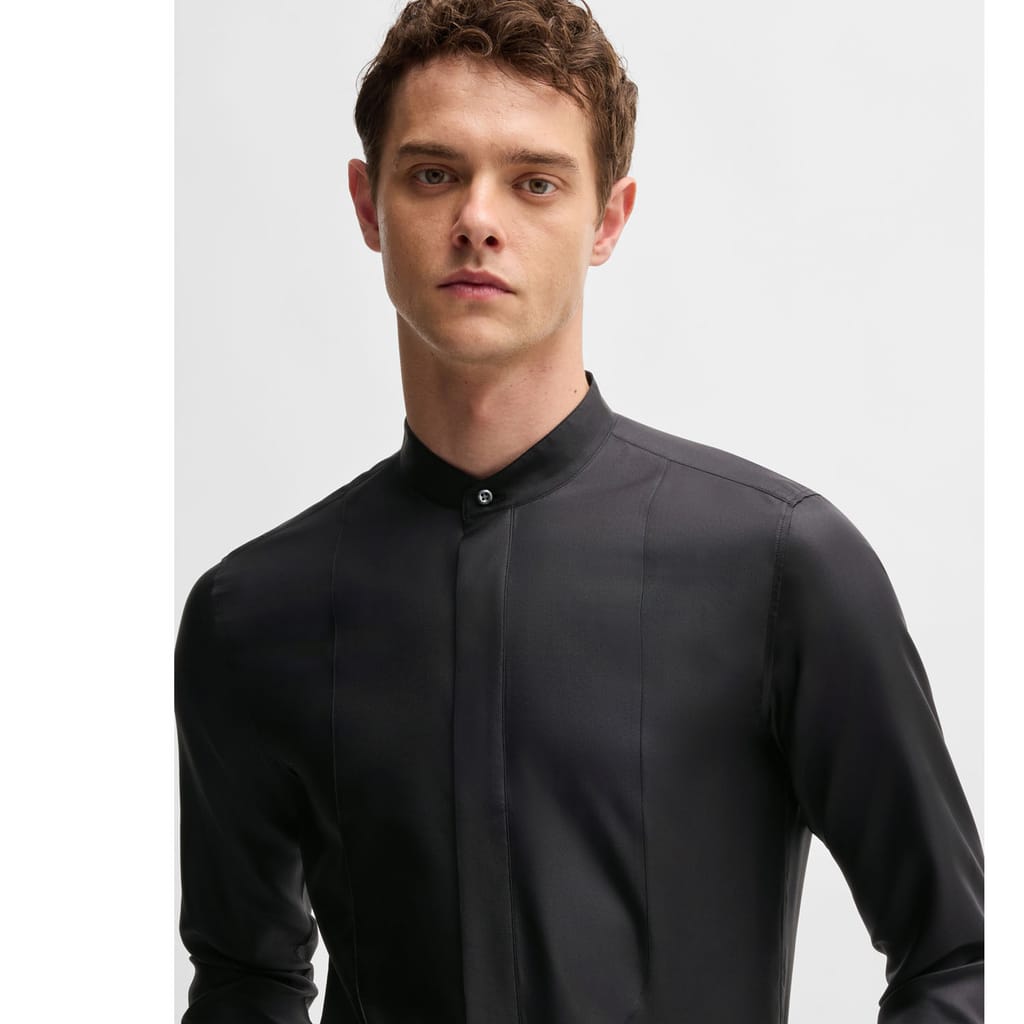 An elevated evening shirt in a slim fit by BOSS. In Italian-made silk, this piece has a rounded bib and Korean collar for timeless elegance.