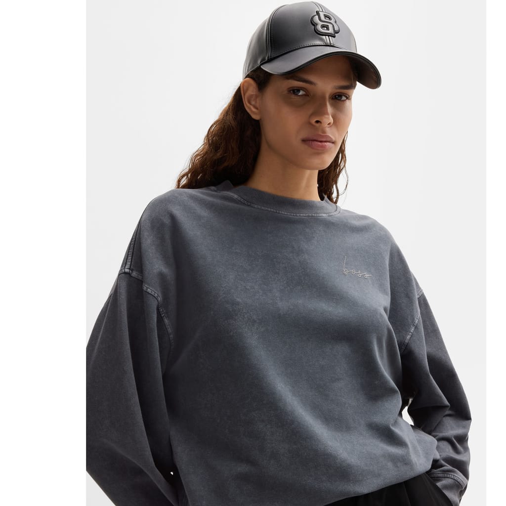 A relaxed-fit sweatshirt with a special dyed finish by BOSS. Designed in organic cotton with stretch, this layer is detailed with a small BOSS logo.