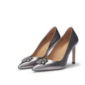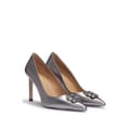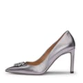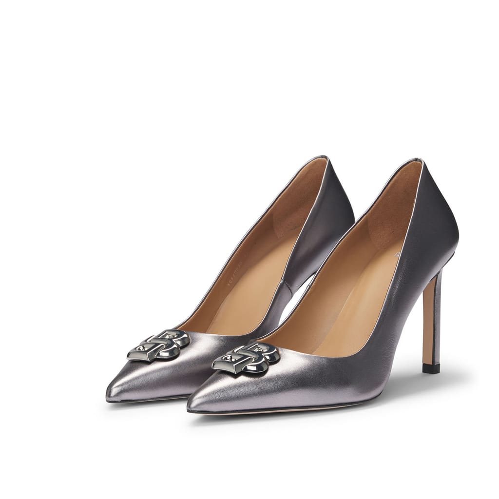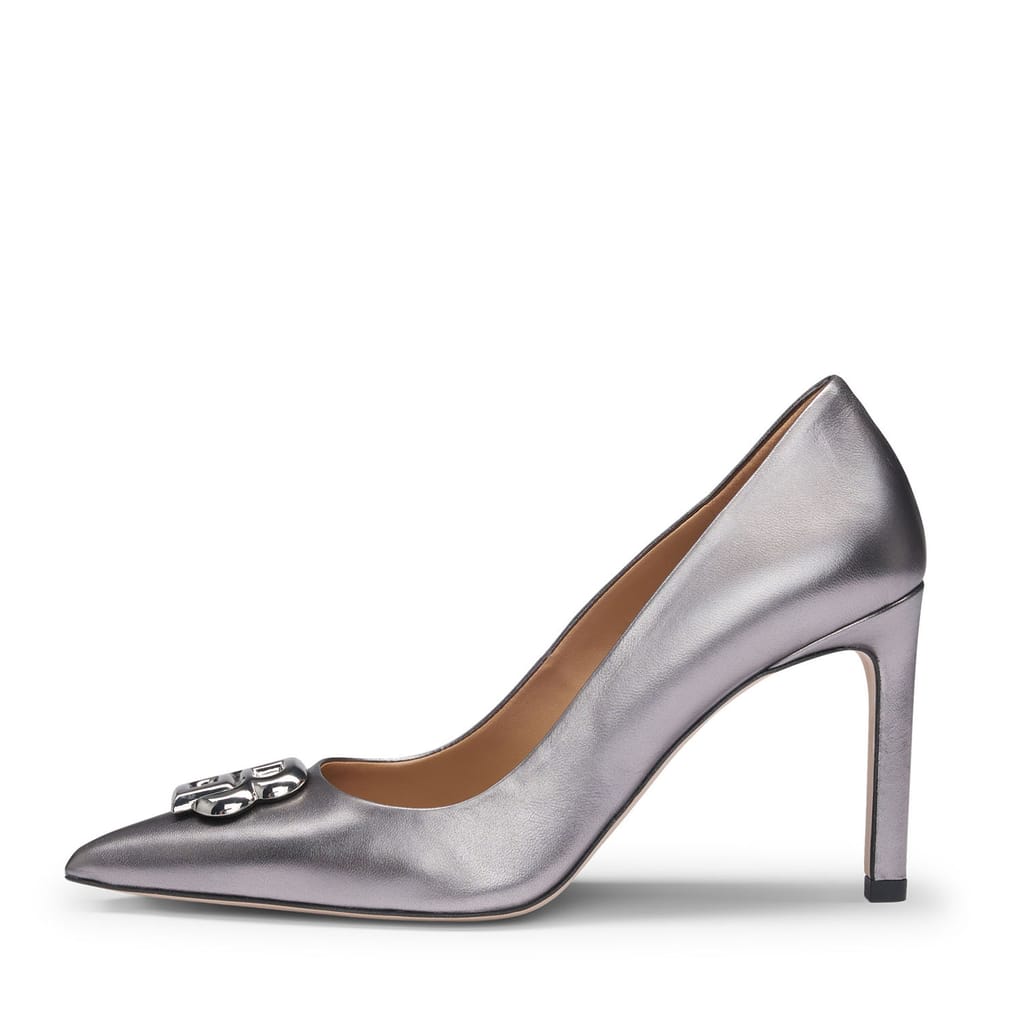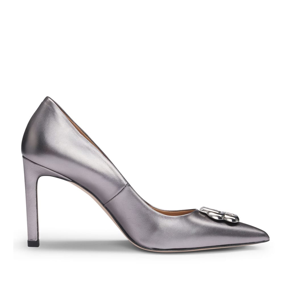 Womens BOSS Janet Metallic Leather Pumps with Double B Monogram in silver