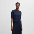 Womens BOSS Fusionana Cropped Sleeve Sweater in a Mohair Blend in dark blue