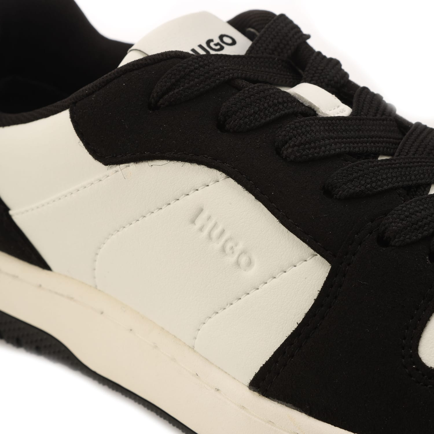 Womens HUGO Hadrian Mixed Material Trainers with Logo Details in open white