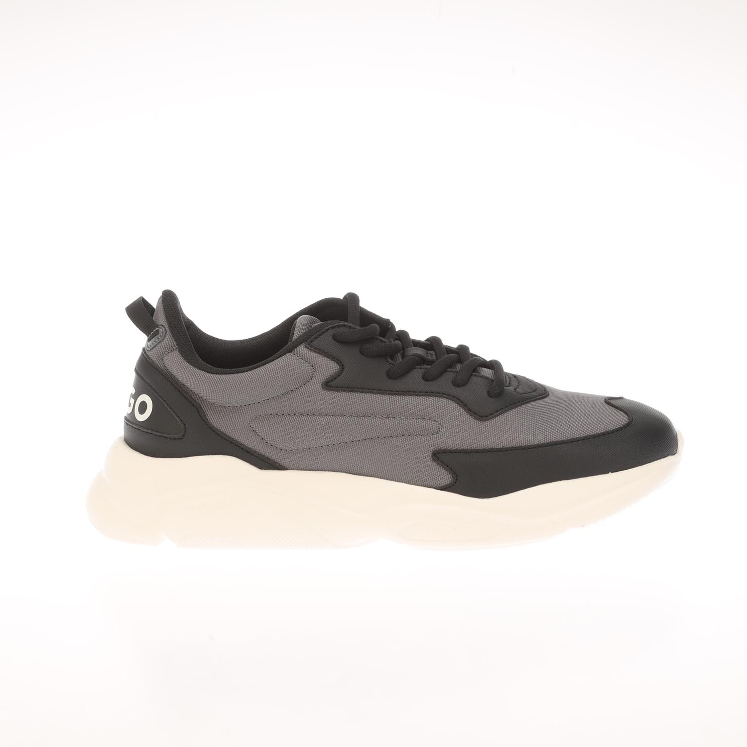 Mens HUGO Leon Logo Counter Trainers with Canvas Effect Fabric in dark grey