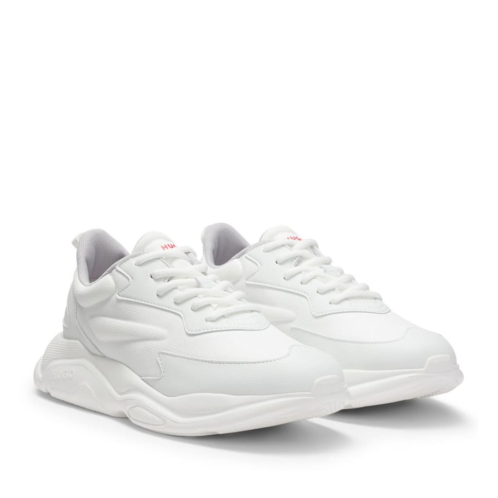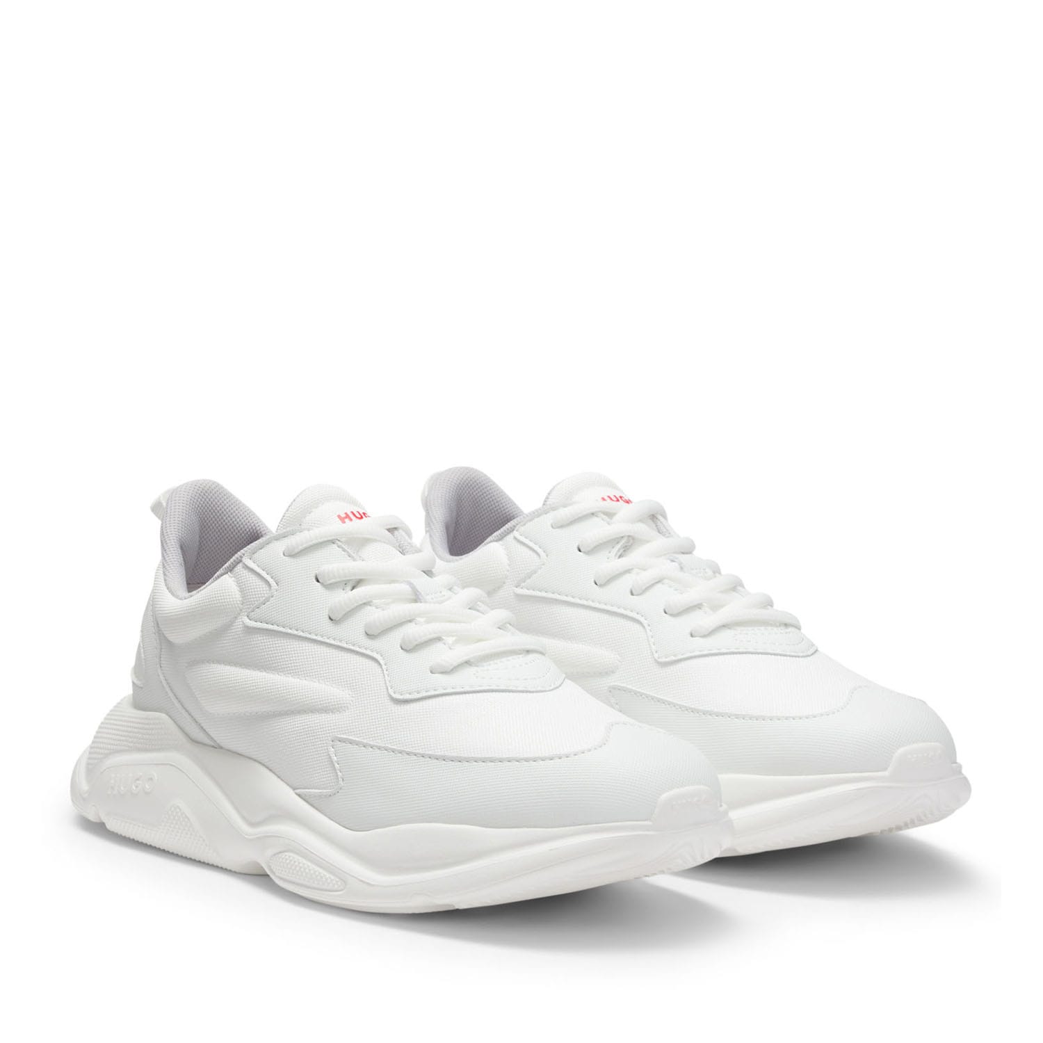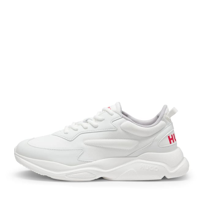 Mens HUGO Leon Logo Counter Trainers with Canvas Effect Fabric in open white