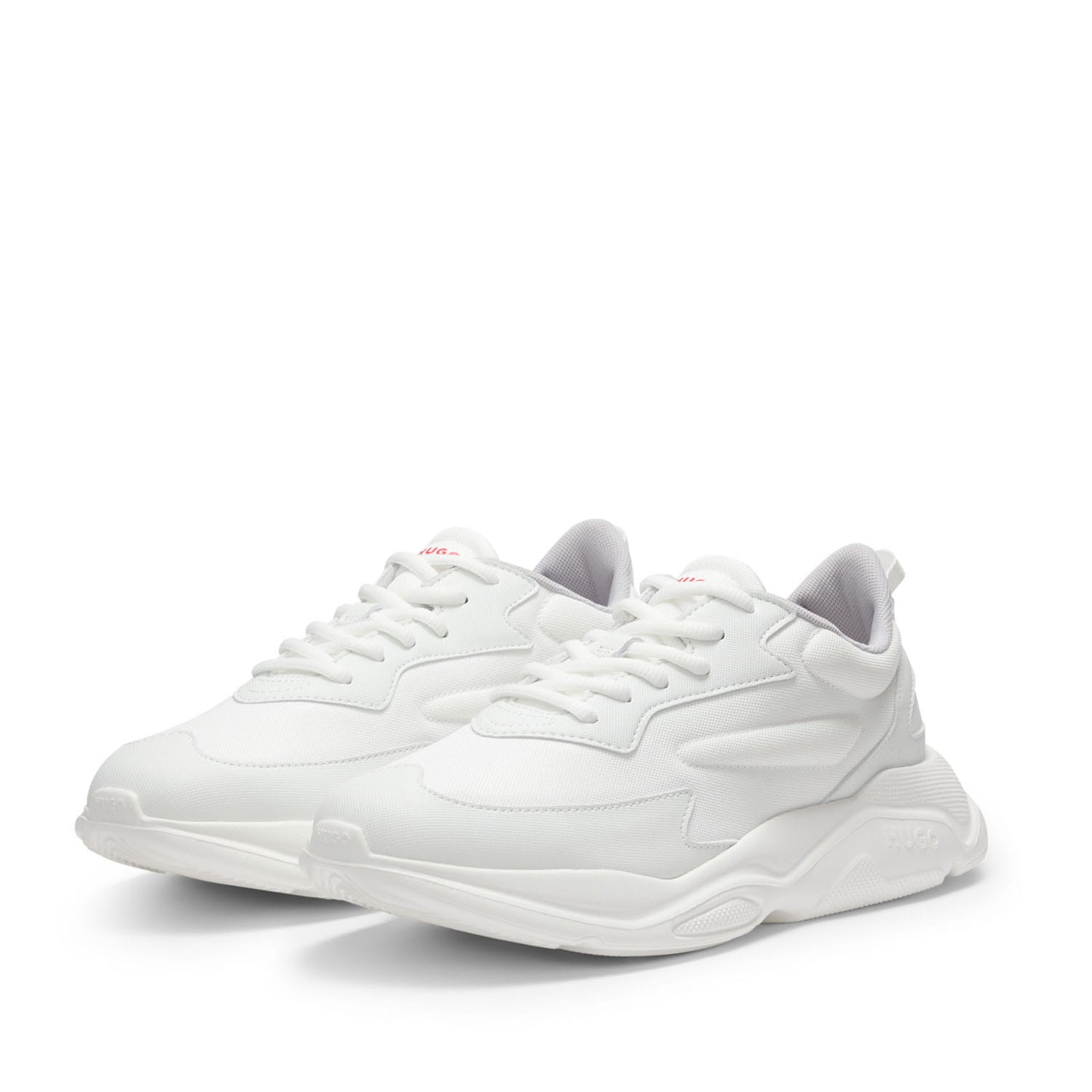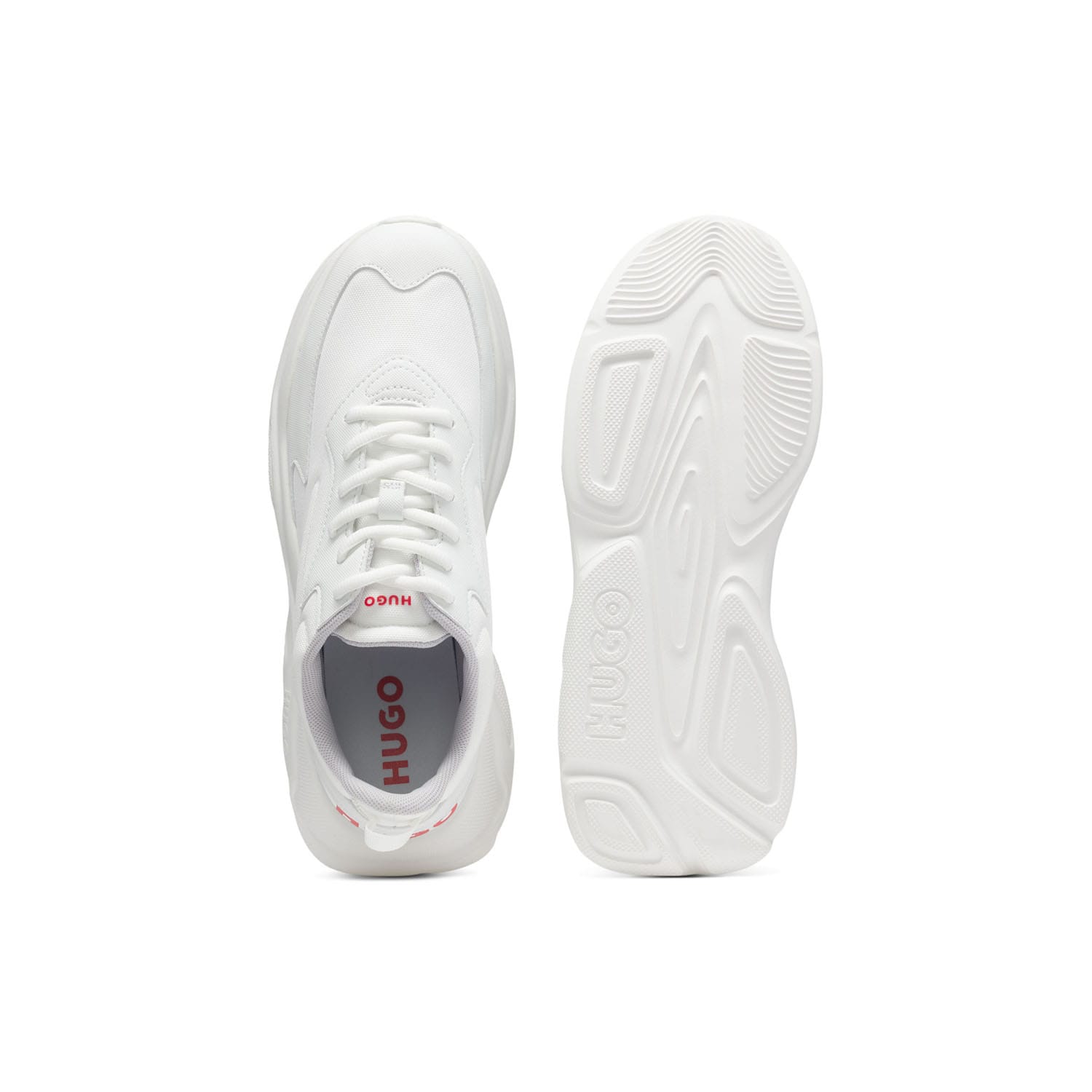 Round off casual looks with the sporty style of these HUGO Menswear trainers. Crafted in a mix of materials including canvas-effect fabric.