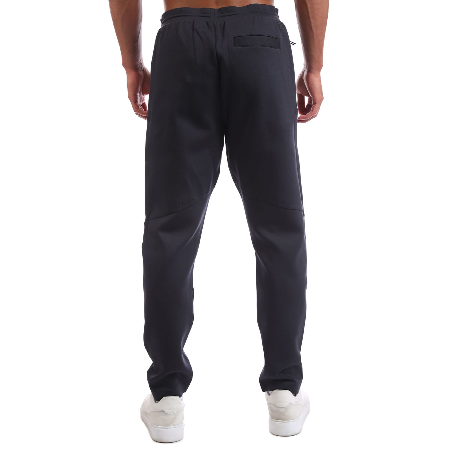 Mens BOSS Hicon DesertTech Stretch Tracksuit Bottoms with Laser Cut Holes in dark blue.