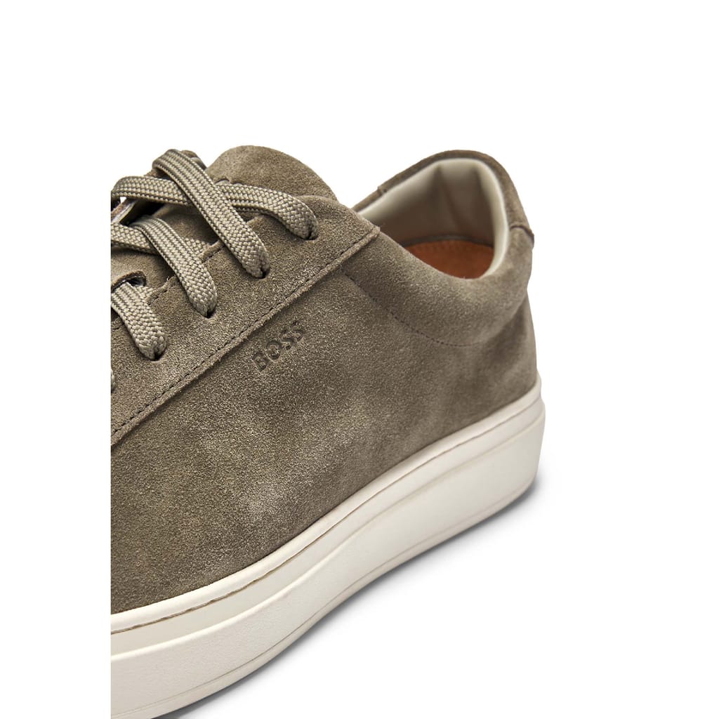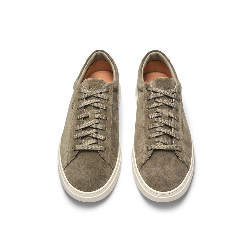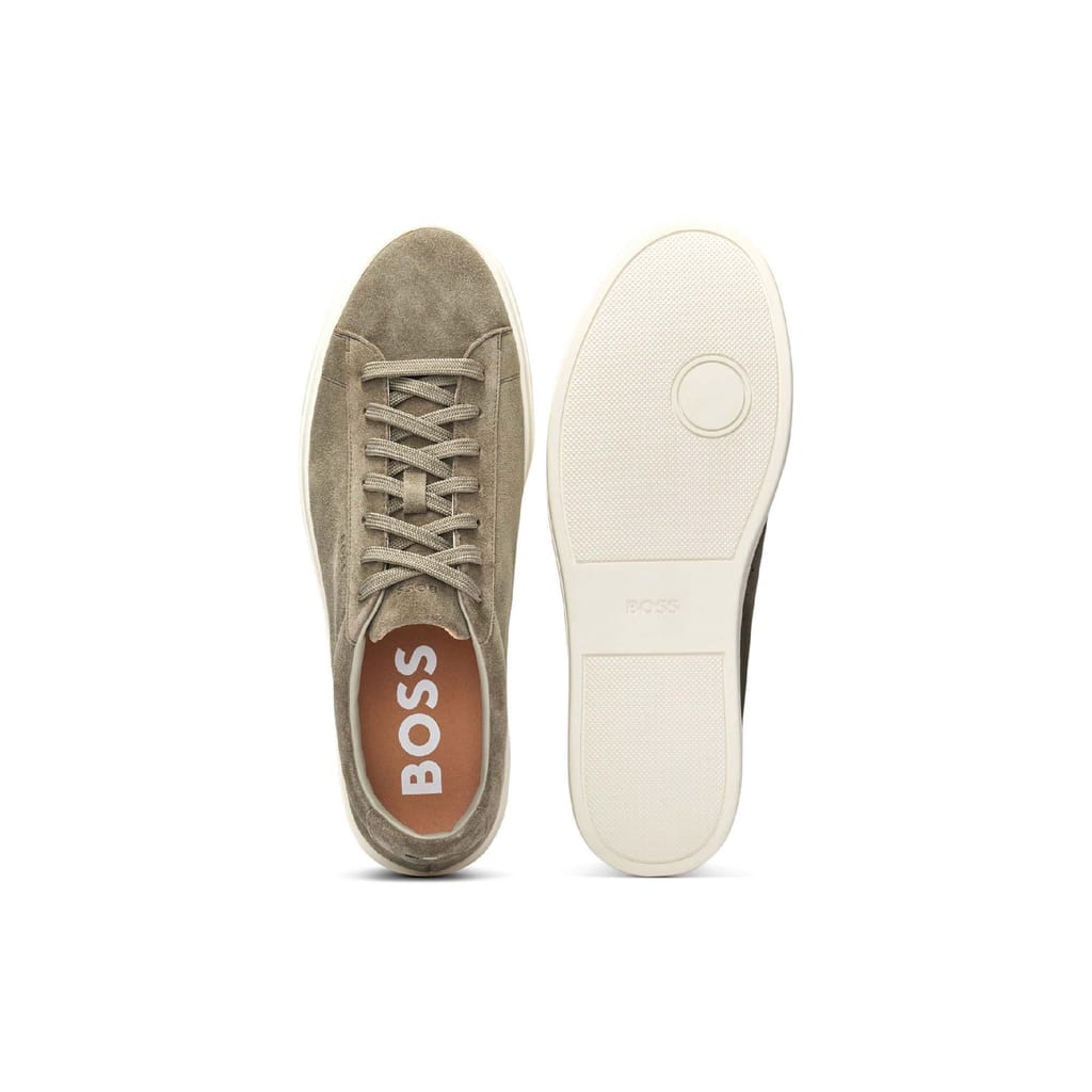 Mens BOSS Kieran Rubber Outsole Trainers in Suede in light green.