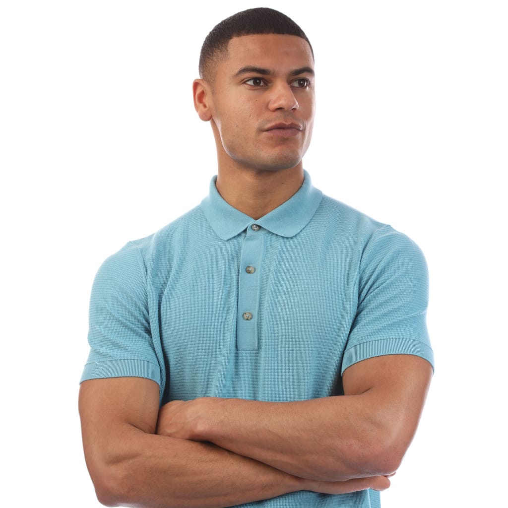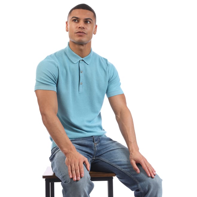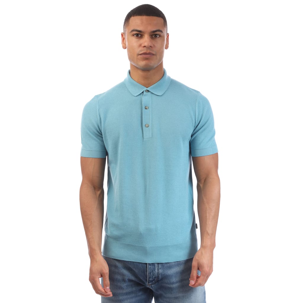 Mens BOSS H-Iannotti Knit Polo Sweater with Rich Structure in light blue
