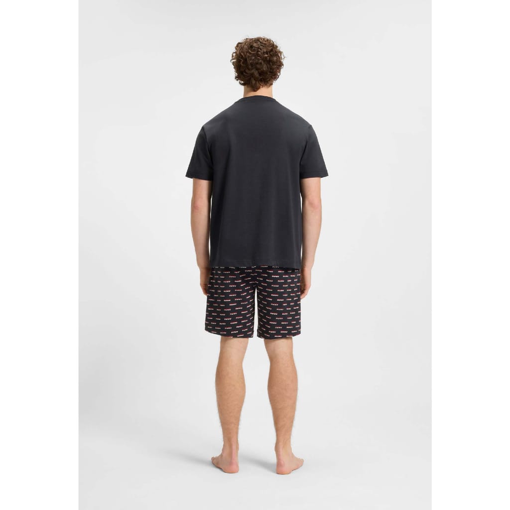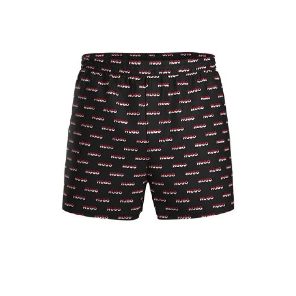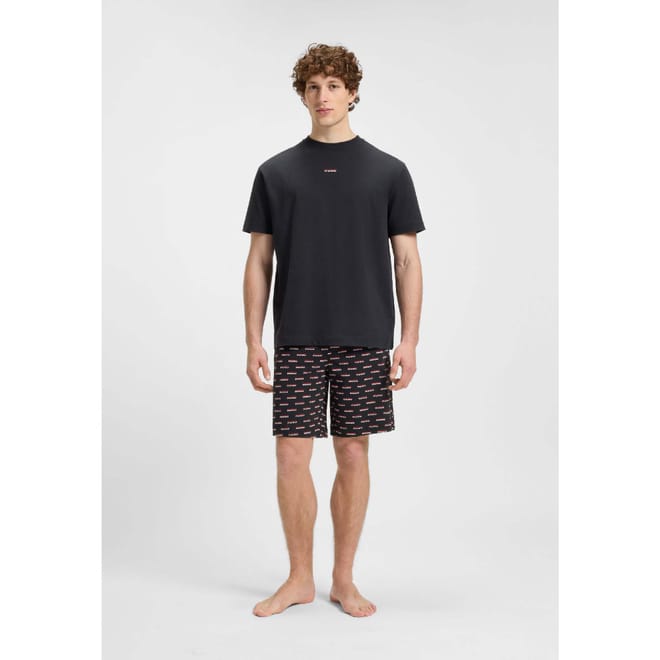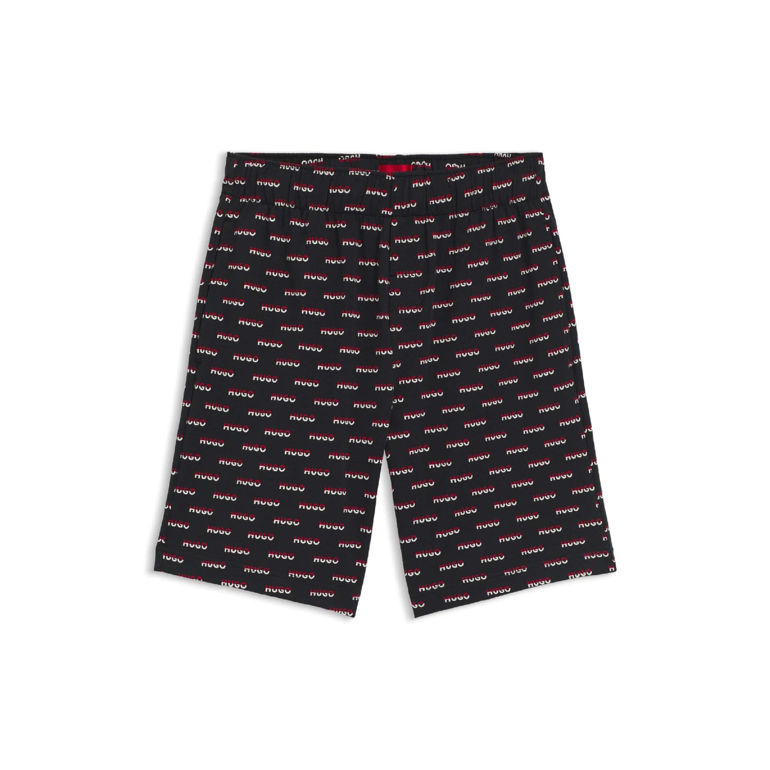 Mens HUGO Logo Print Pyjama Shorts in Cotton Jersey in black