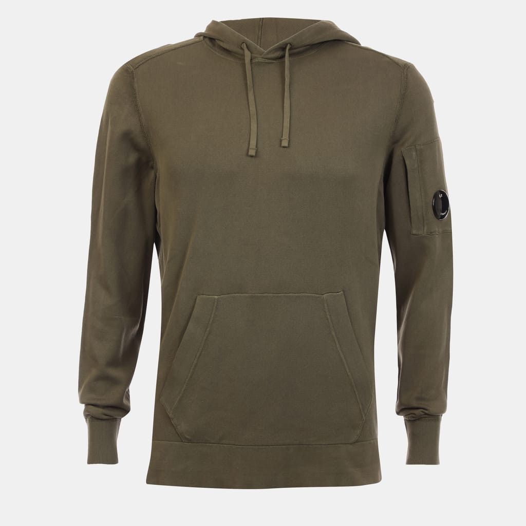 Mens C.P. Company Lightweight Knit Hoodie in olive.