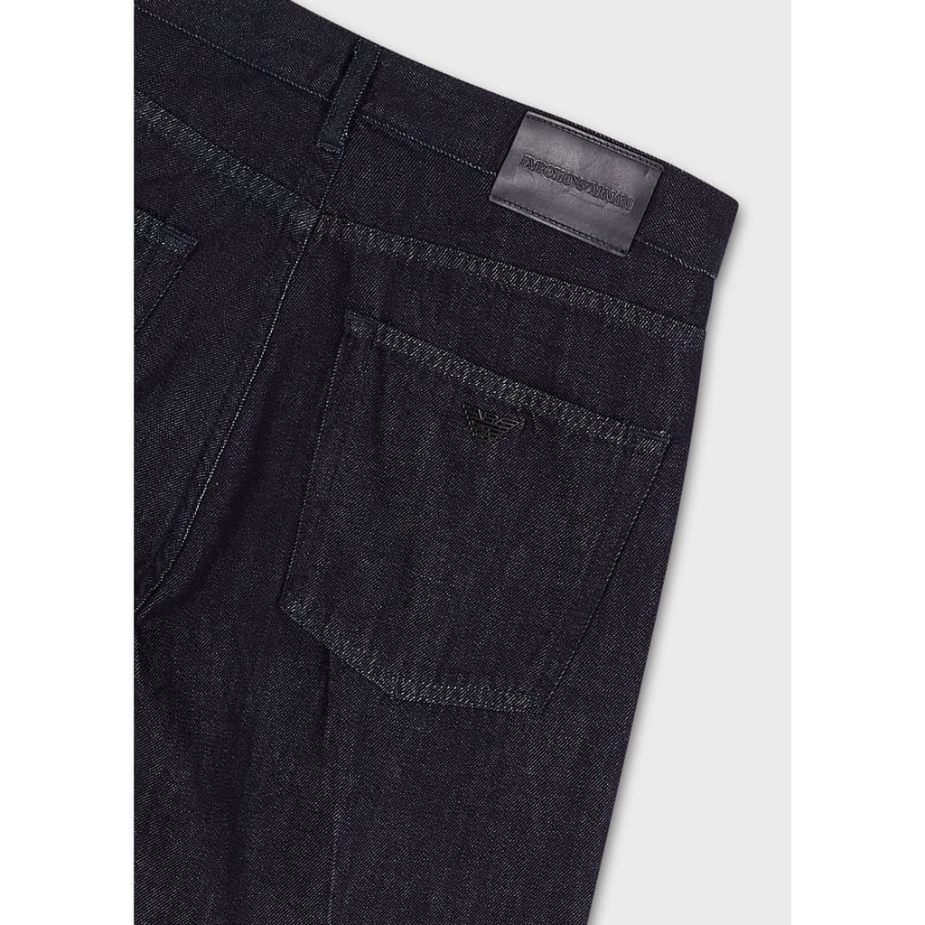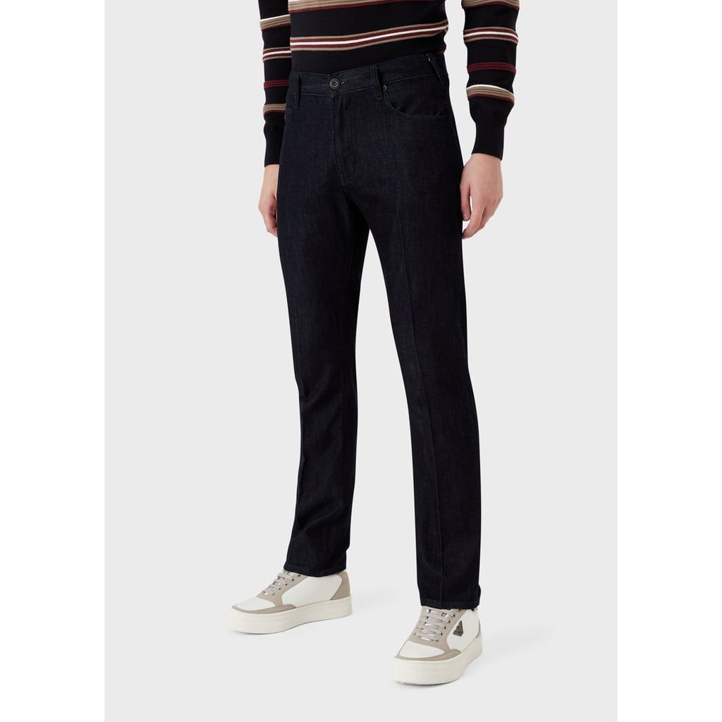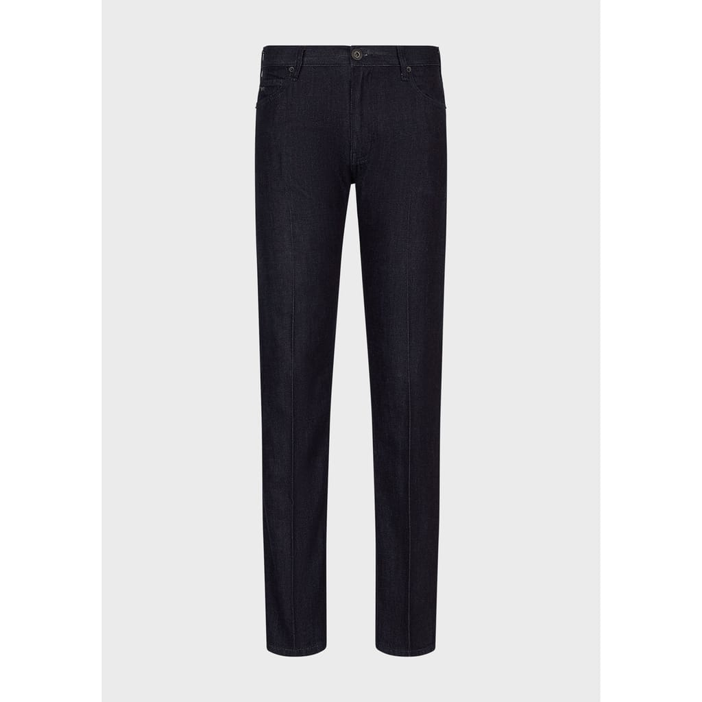 Zip fly and button fastening. Five pocket design. Belt loops. Emporio Armani logo belt patch at the rear. Slim fit. -