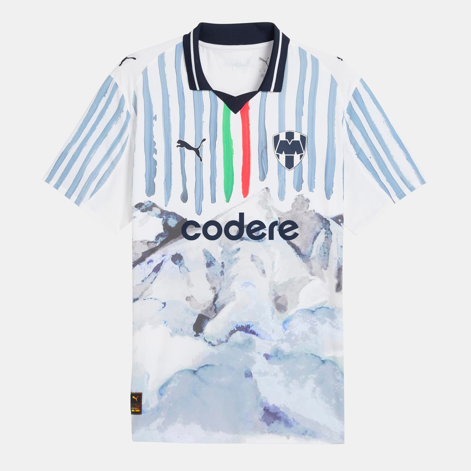 Not many stadiums come with a view like this. The iconic backdrop to C.F. Monterrey’s home ground – shaped by the peaks of Cerro de la Silla – takes centre stage in this kit designed by Brooklyn-based artist KidSuper. Reimagined in sweeping watercolor, it’s Monterrey redrawn for the world stage. This kit is part of the PUMA x KIDSUPER collection, where hand-drawn graphics, watercolor palettes, and designs rooted in club culture come together for a fresh take on the Beautiful Game.