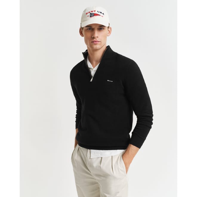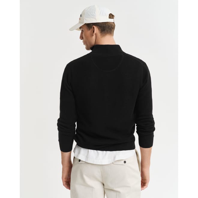 This versatile sweater from GANT is knitted from 100% cotton in a lightweight piqué structure. Designed for a regular fit, it features a half-zip collar, ribbed detailing at the hem and cuffs, and a GANT logo embroidered at the chest. Layer over tees and wear it with everything from jeans to chinos. -