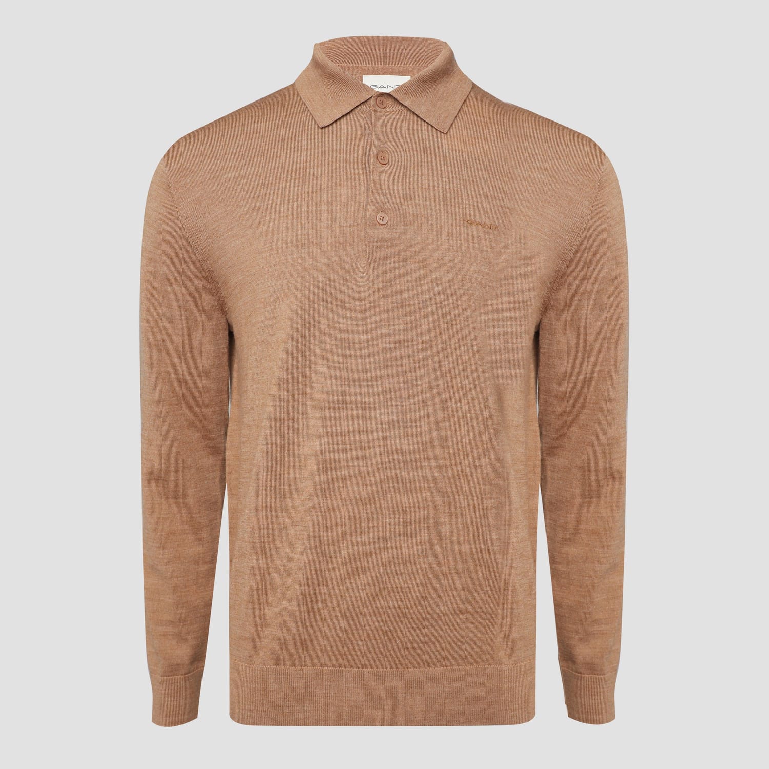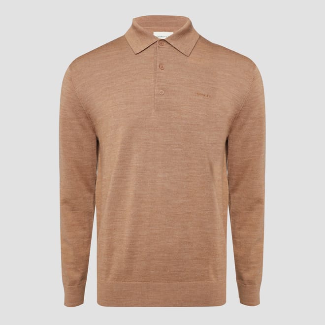 Mens Gant Extrafine Merino Wool Polo Shirt in beige.