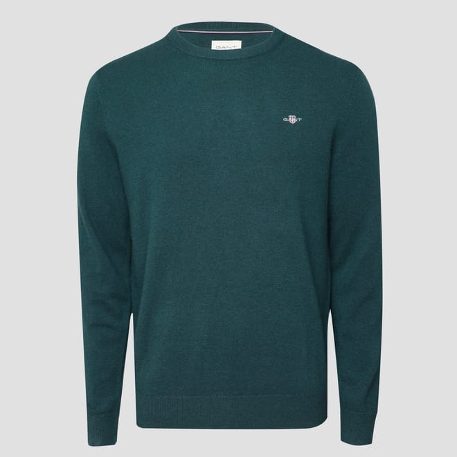 Mens GANT Lambswool Blend Crewneck Sweater in green.