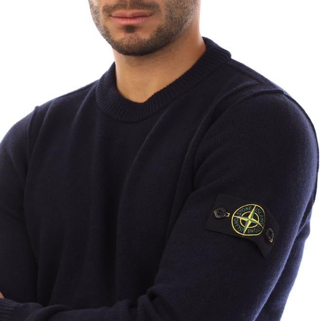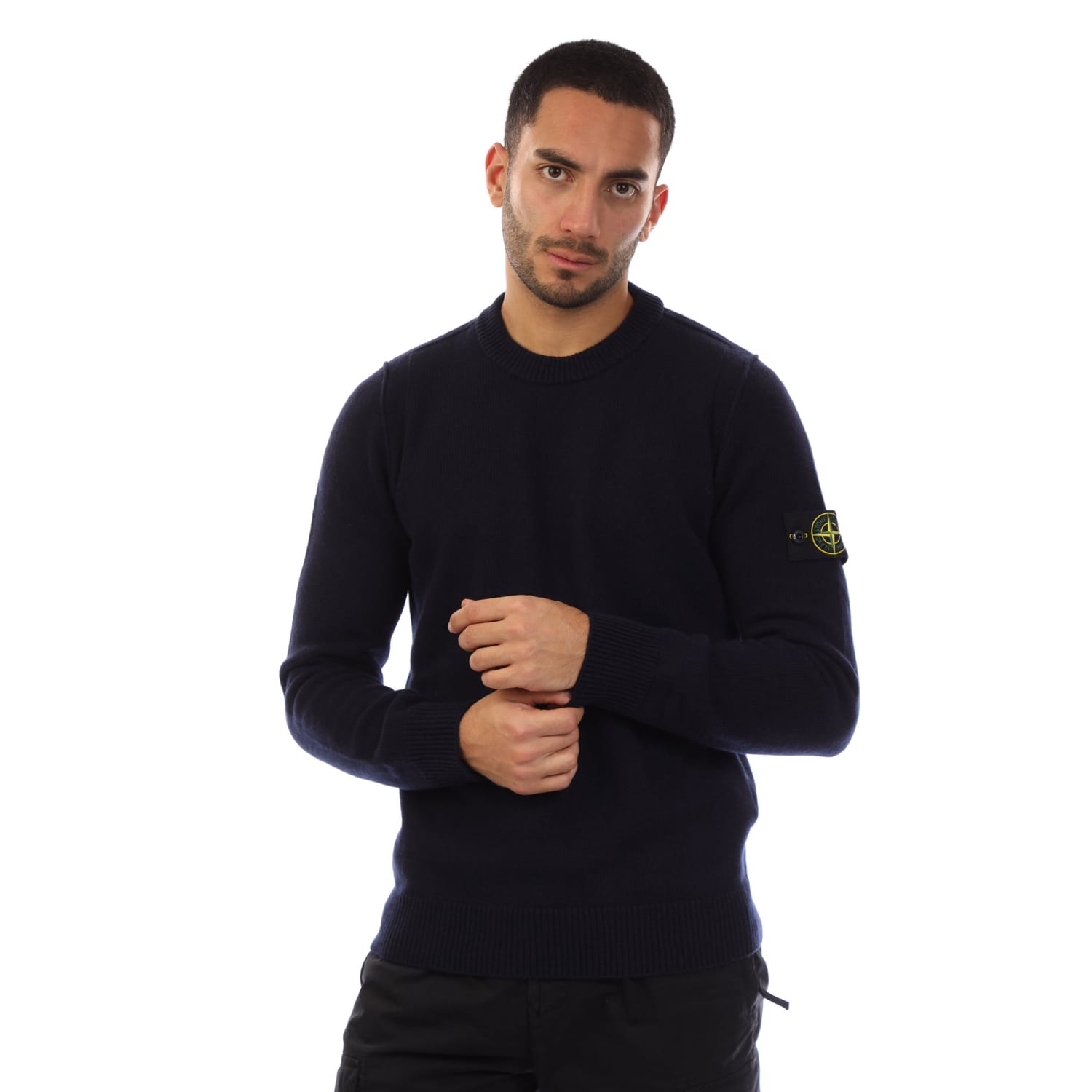 Mens Stone Island Lambswool Crewneck Sweatshirt in navy.