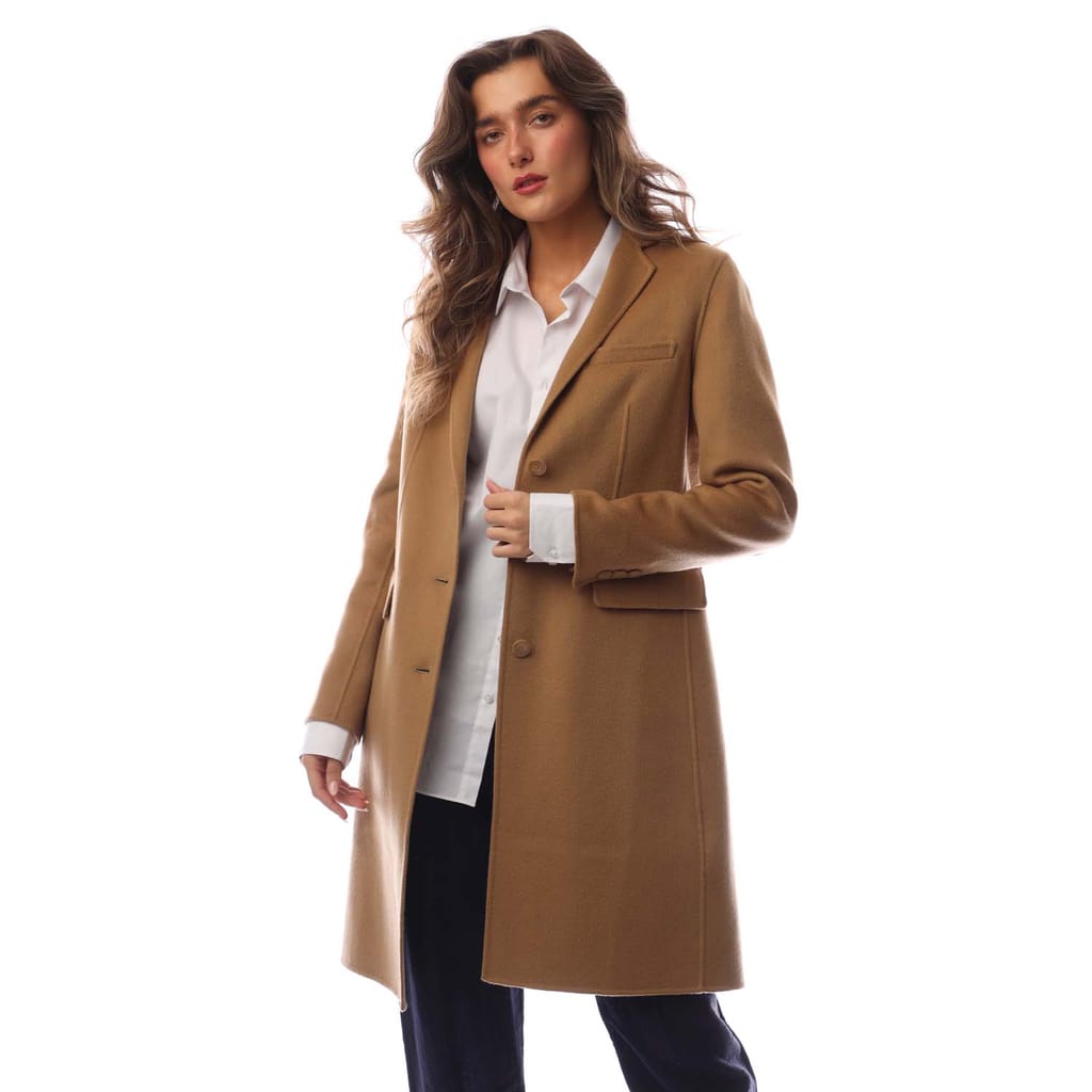 Womens Emporio Armani Lapelled Mid-Length Coat in camel.