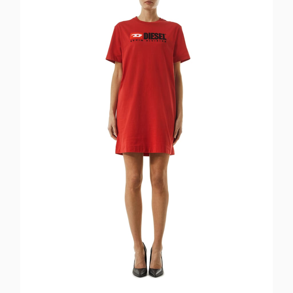 Girls Diesel D-Egor-Div T- Shirt Dress in red.